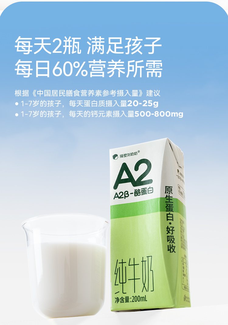 分销【秋田满满】隔壁刘奶奶A2β酪蛋白mini纯牛奶125ml*9盒装 亲和肚肚 适合乳糖不耐受宝宝 直接选购!