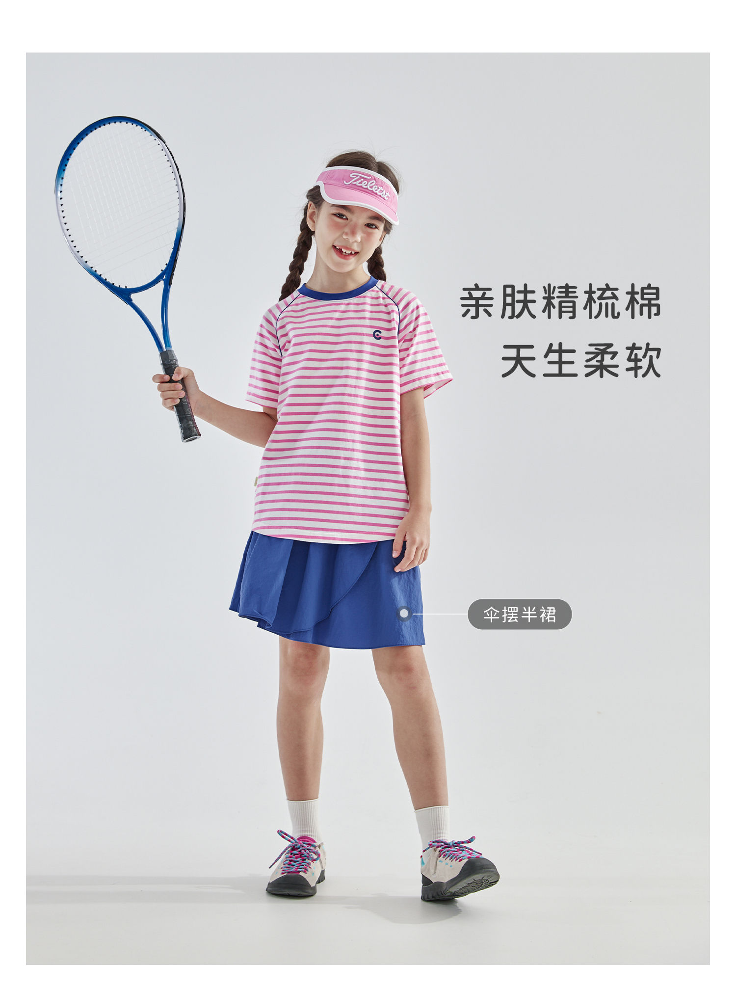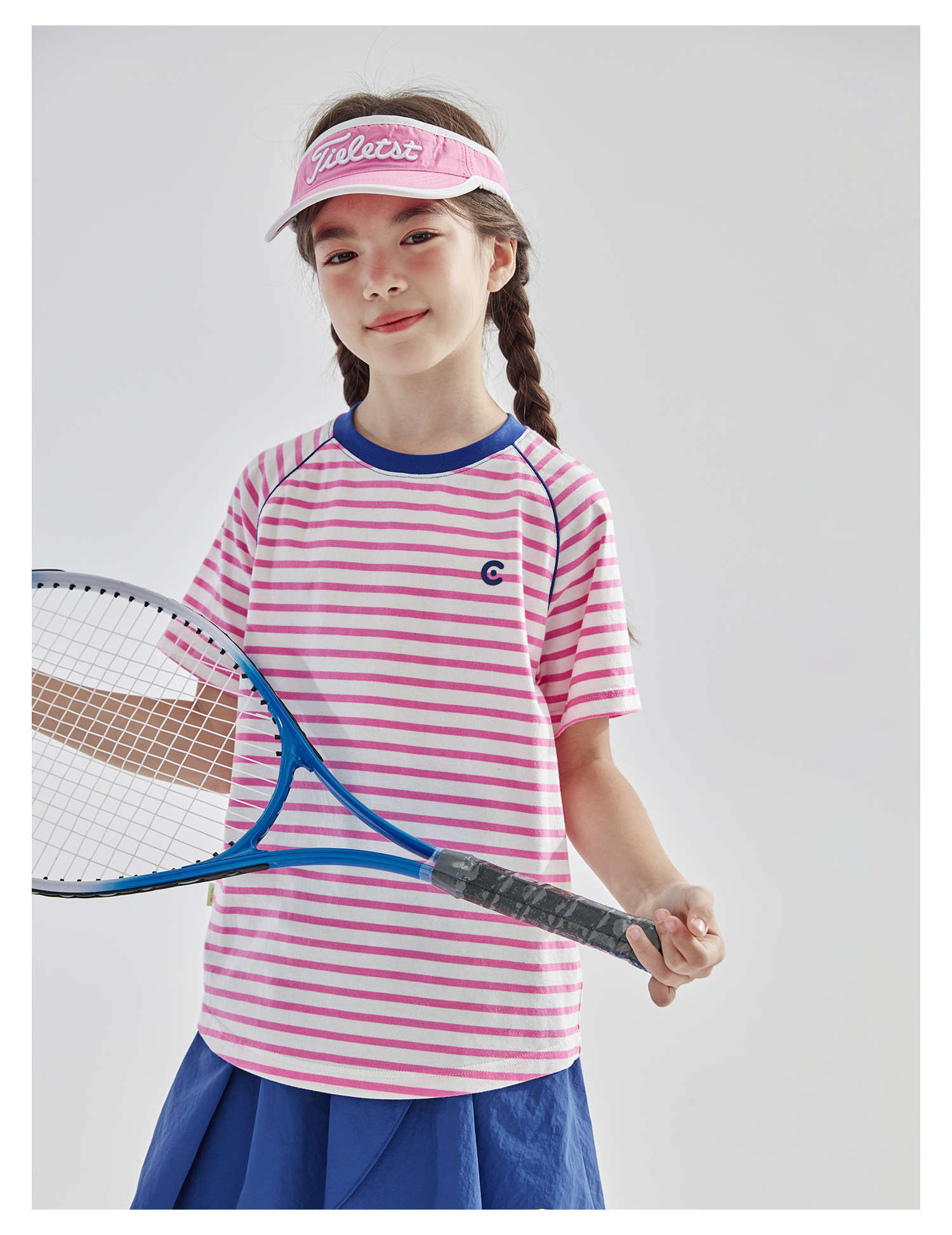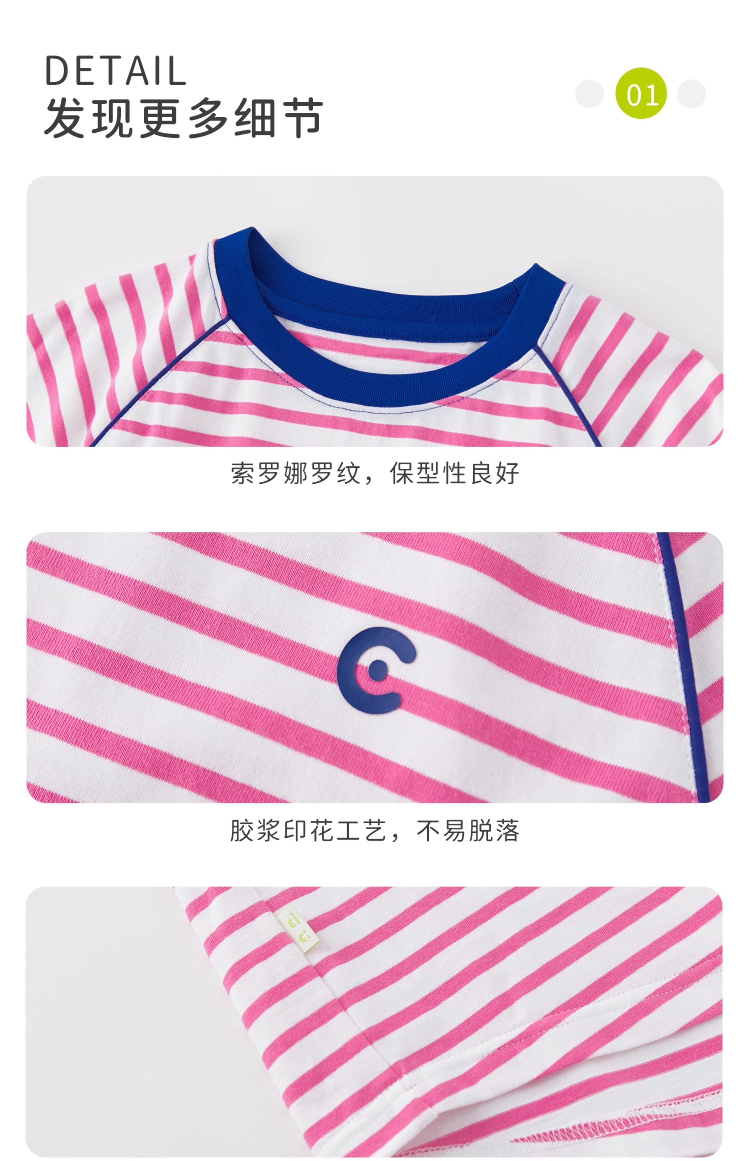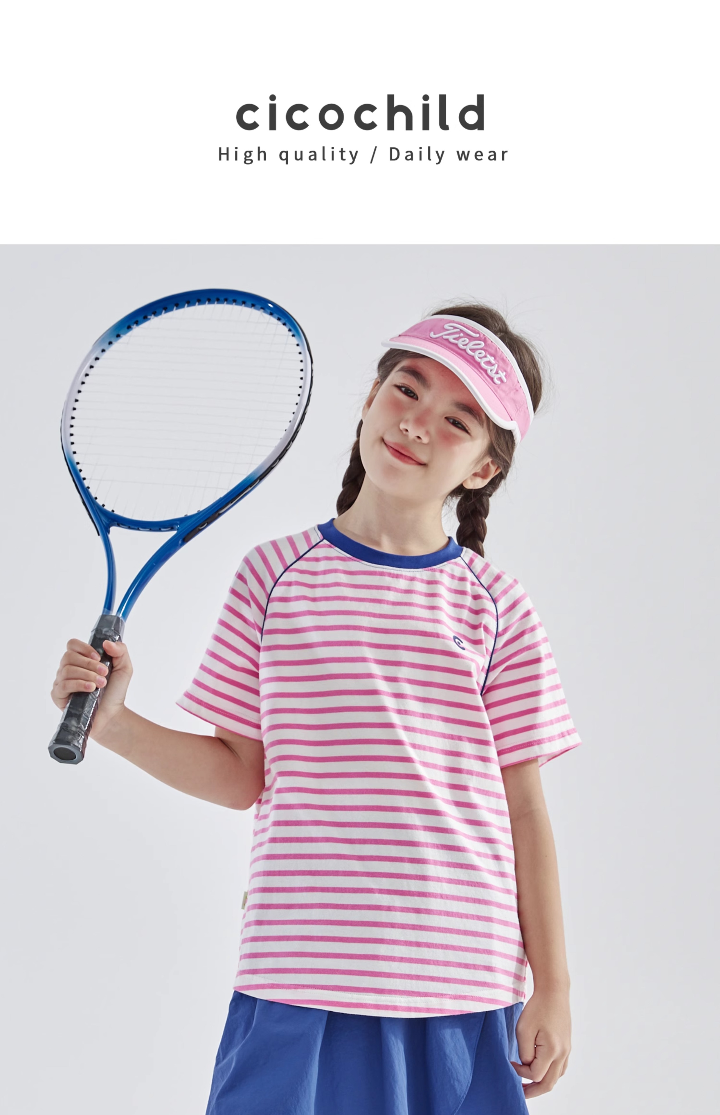 cicochild2025夏新款亲子中大女童亲肤精梳棉条纹短袖T恤