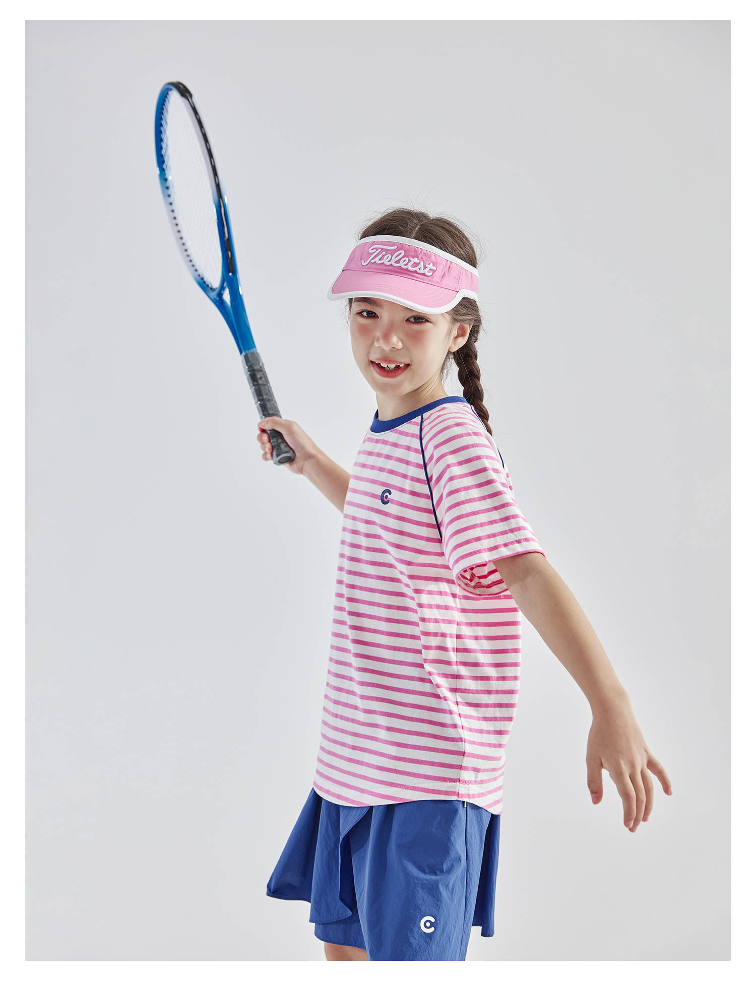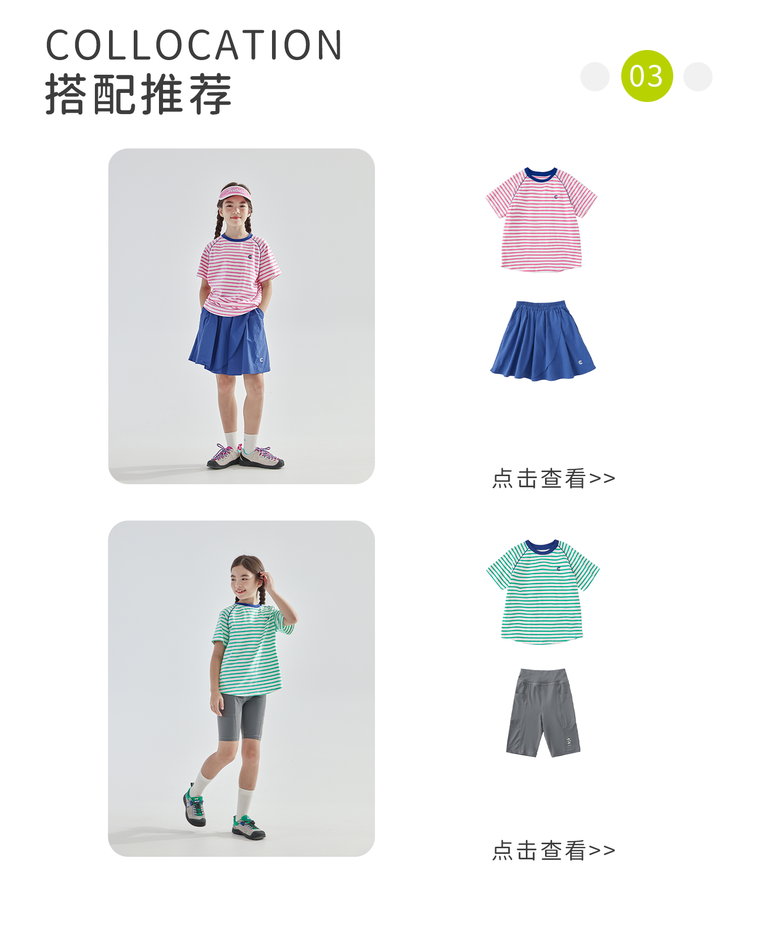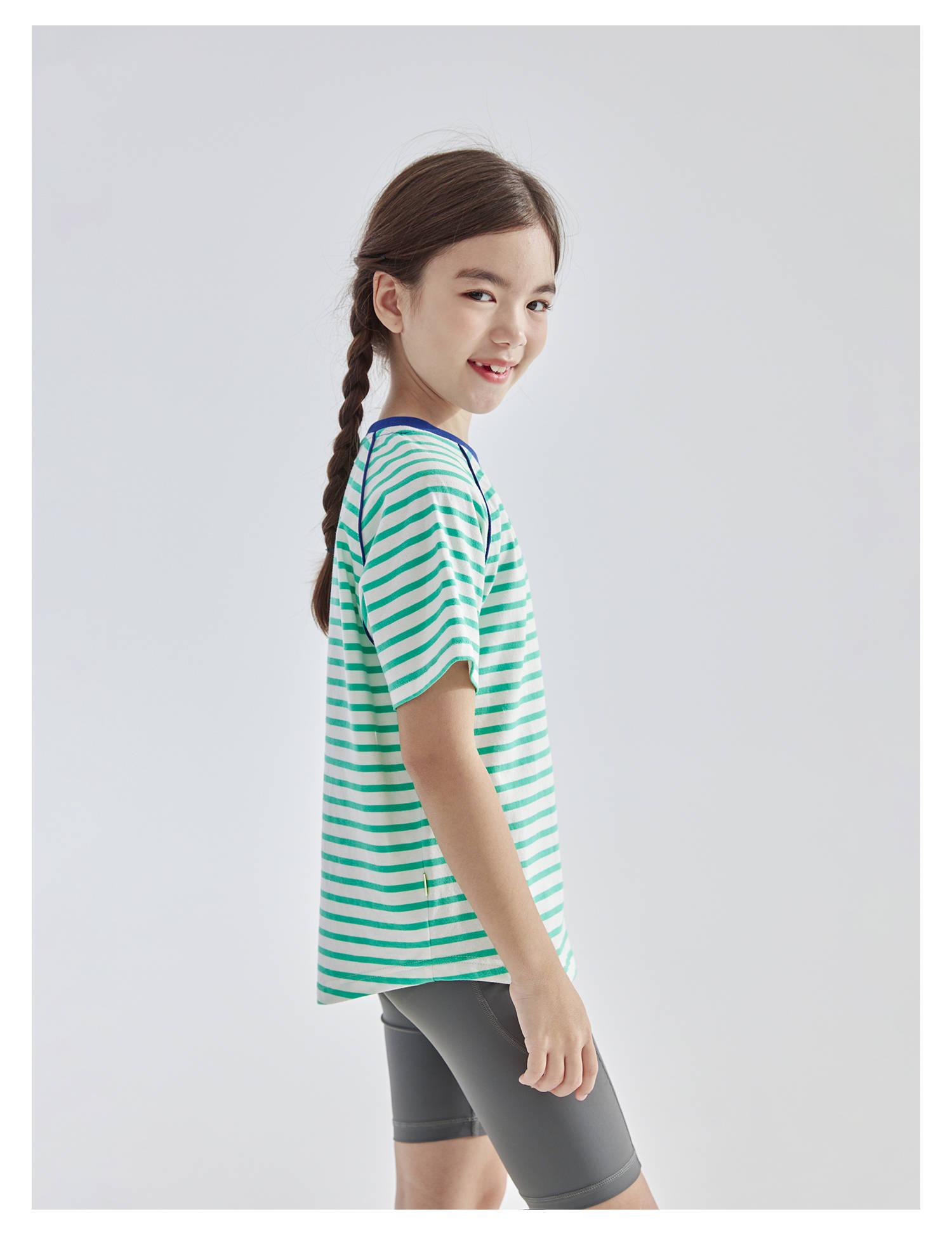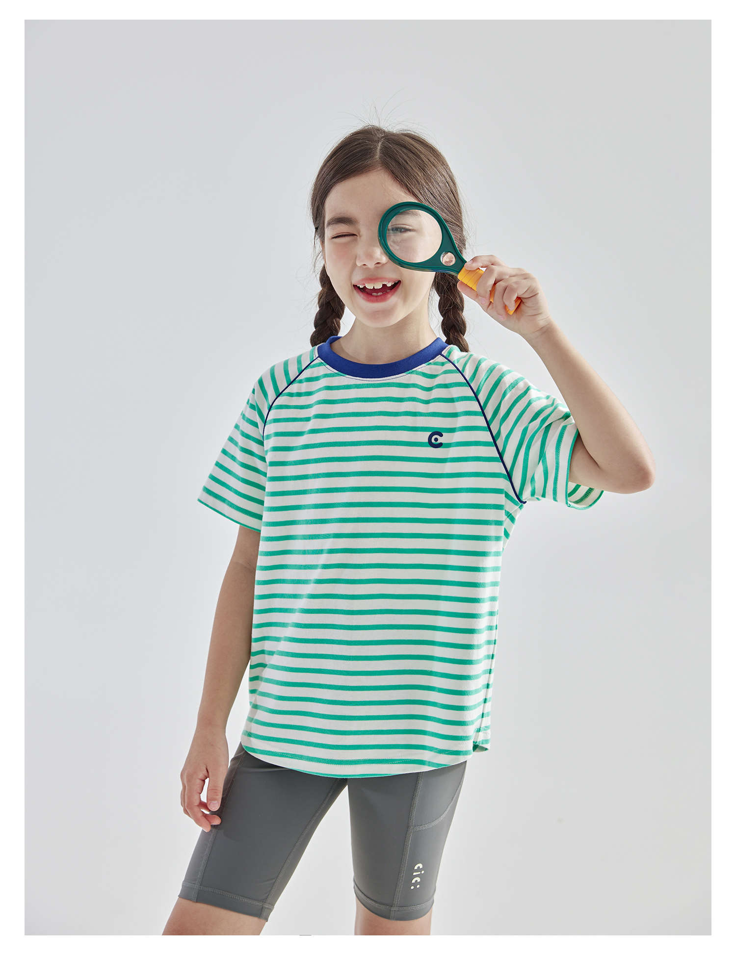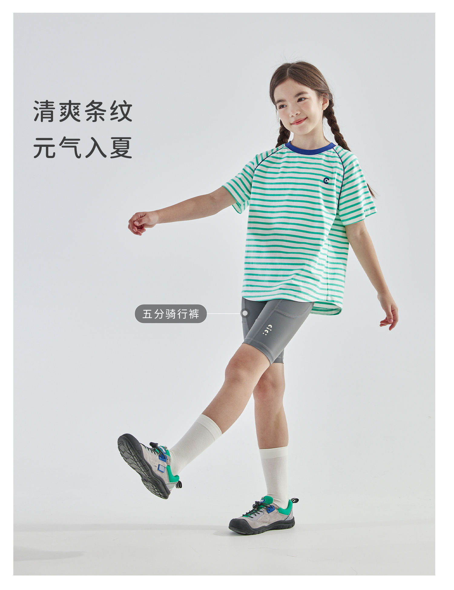 cicochild2025夏新款亲子中大女童亲肤精梳棉条纹短袖T恤