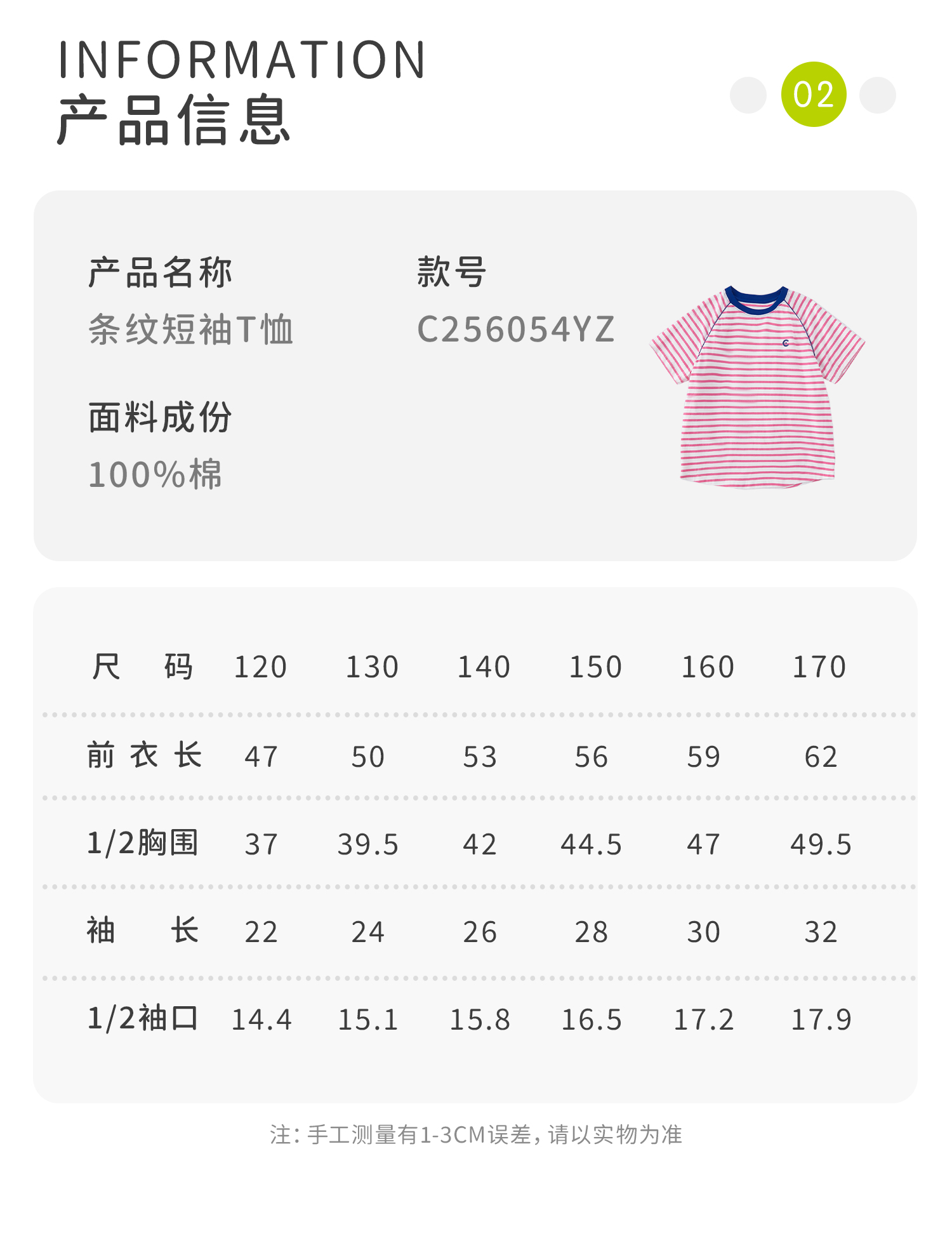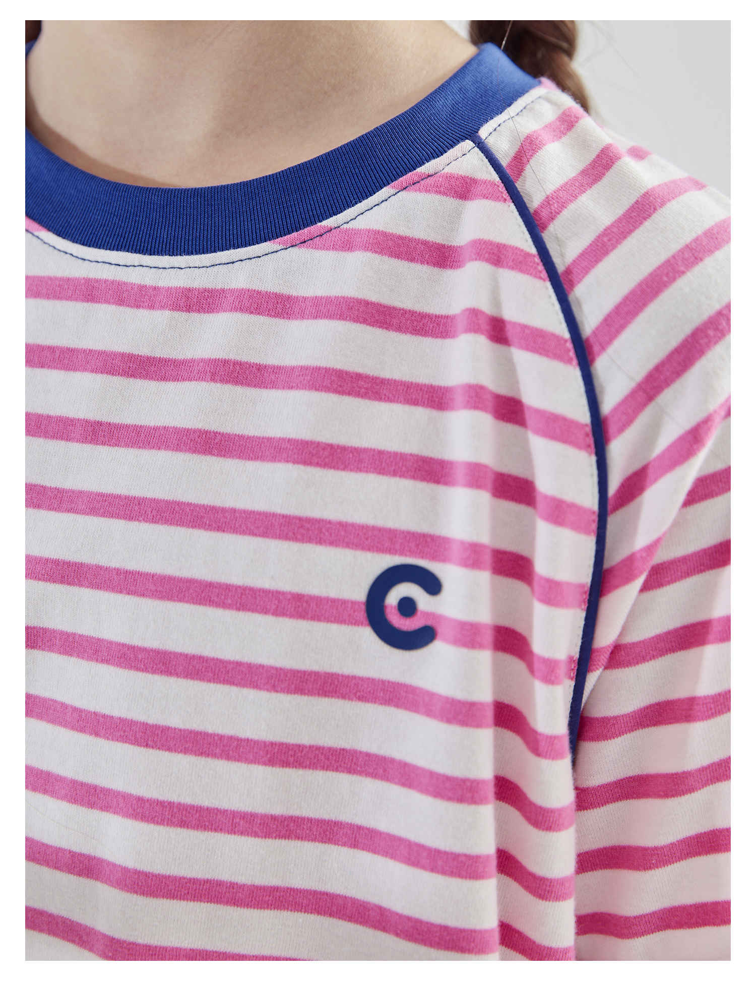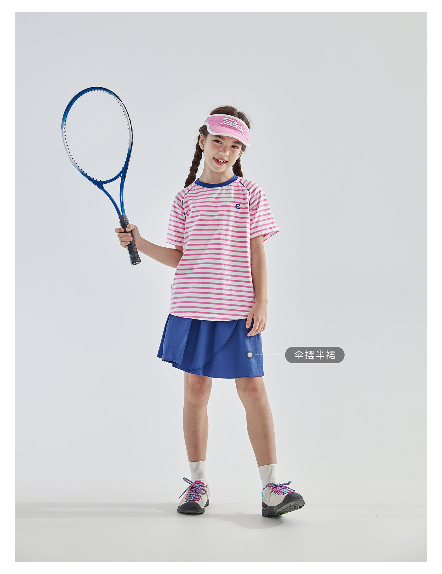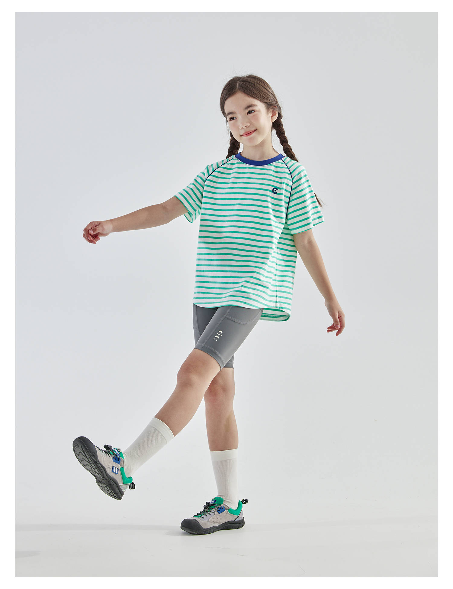 cicochild2025夏新款亲子中大女童亲肤精梳棉条纹短袖T恤