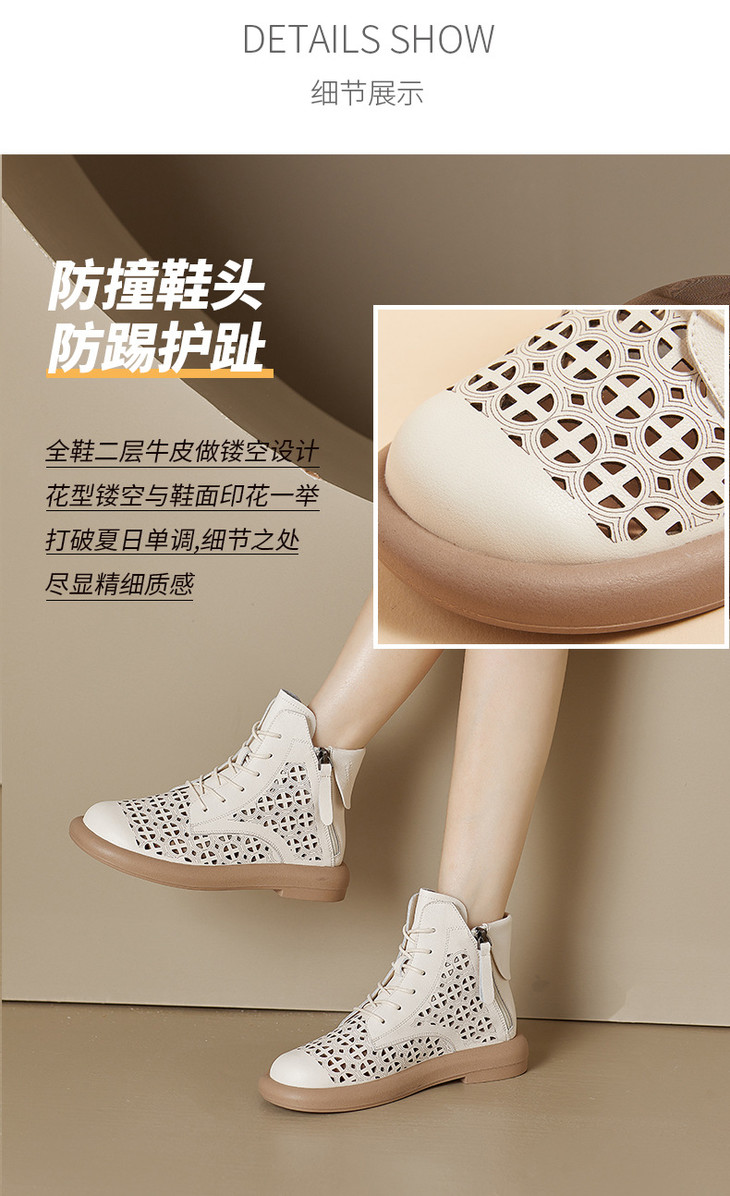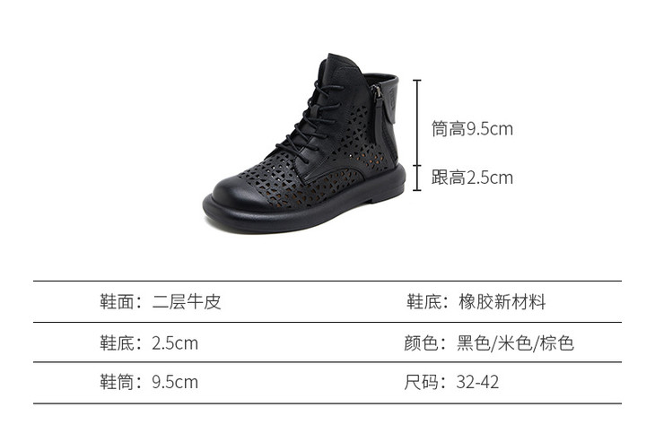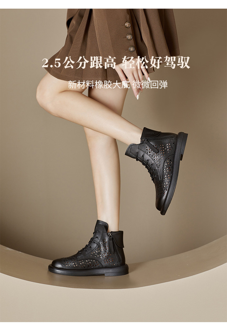 春季新款镂空马丁靴真皮短靴时尚复古风女靴侧拉链低筒镂空马丁靴9027-0