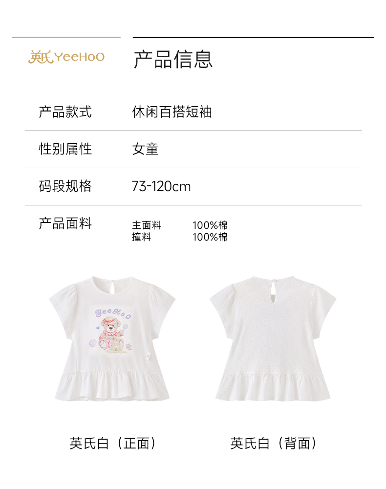 【联名款】英氏&Happy Horse儿童T恤夏季透气短袖上衣女童套衫