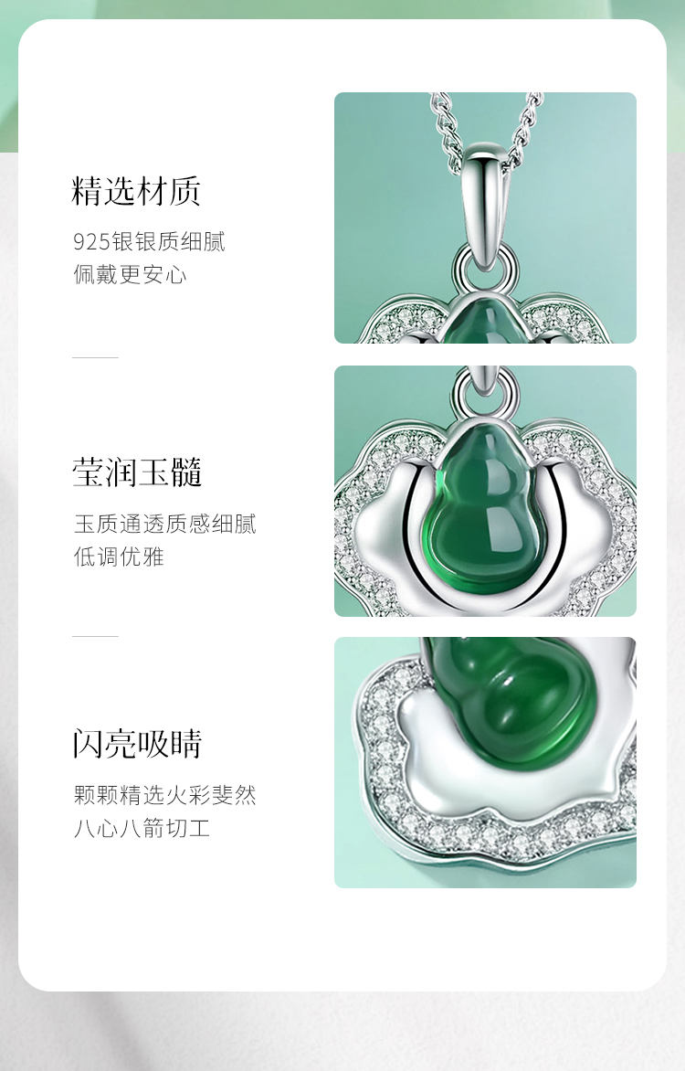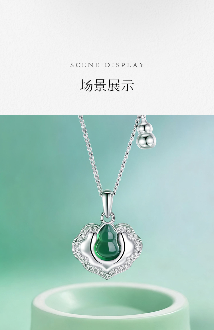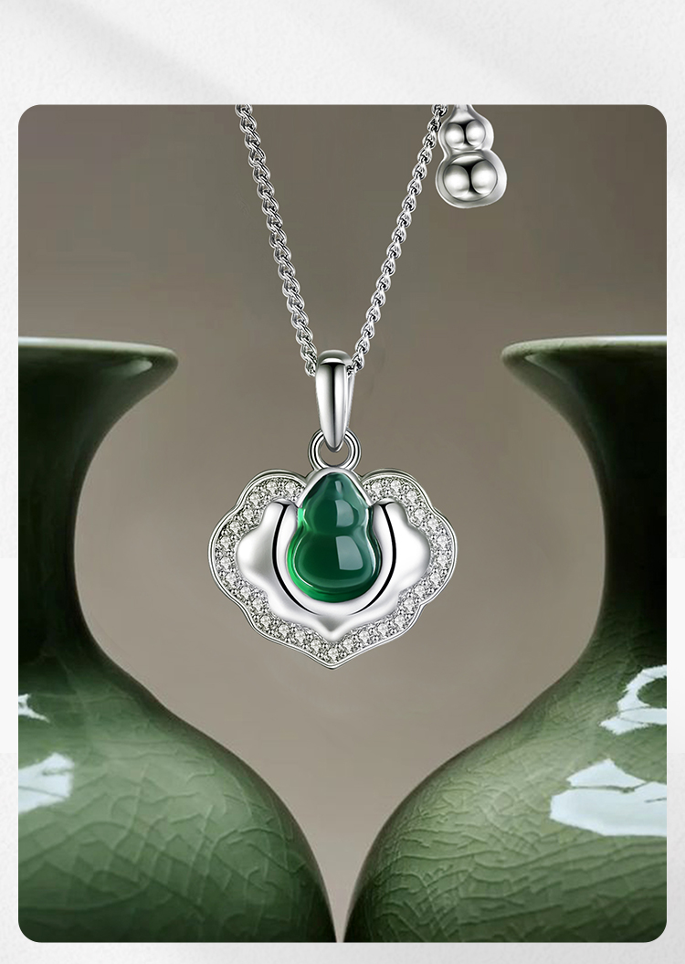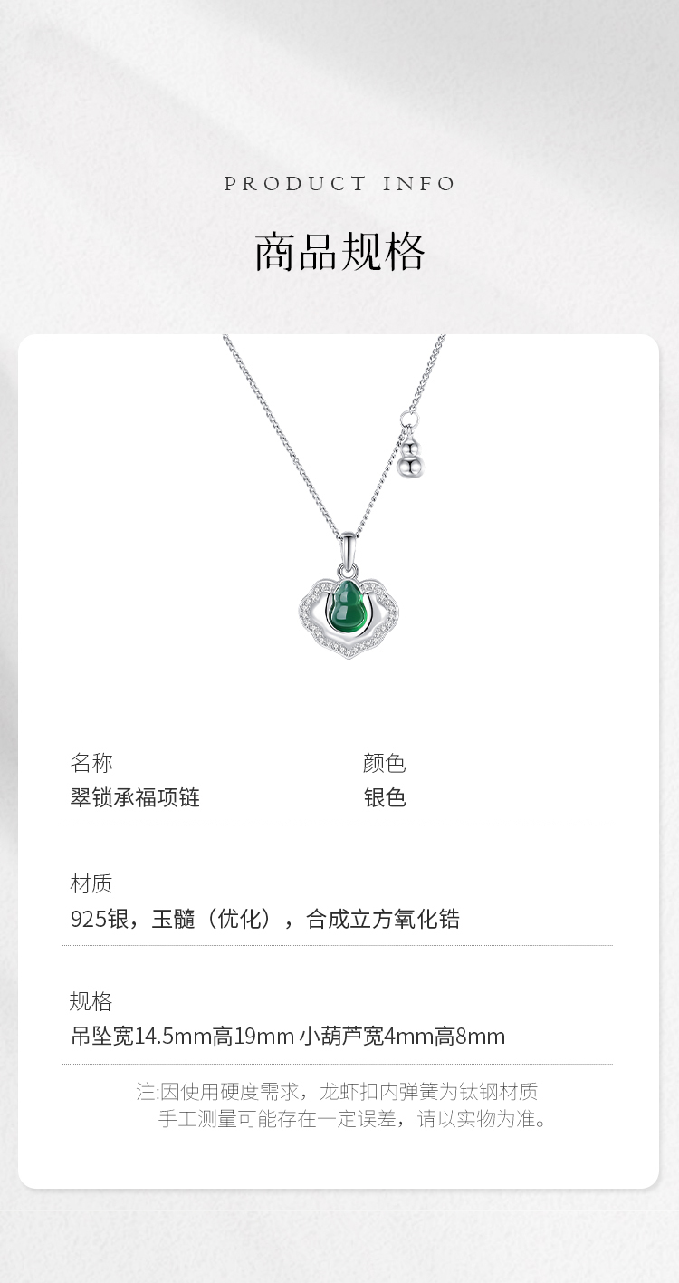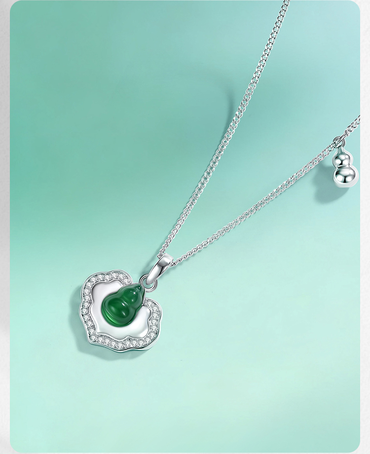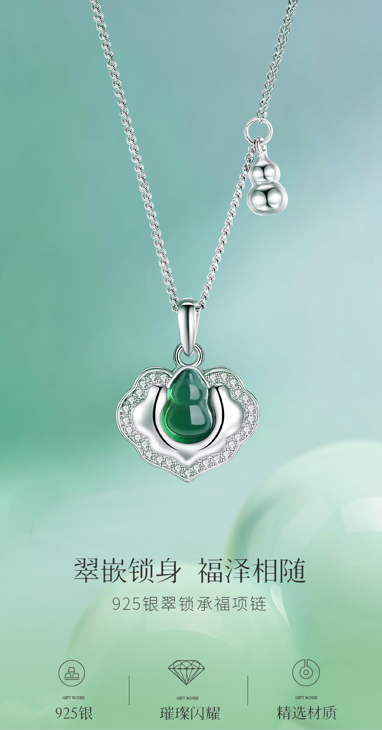 Winy S925 银镶钻国风颈链 绿玉髓如意锁吊坠 送女友闺蜜平安福运国风礼物