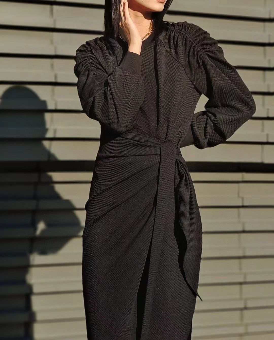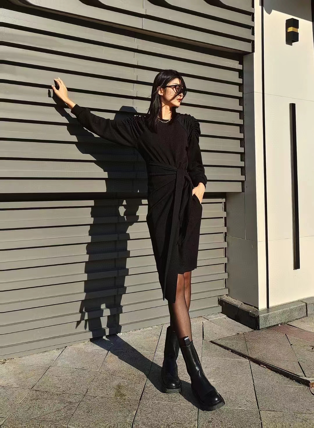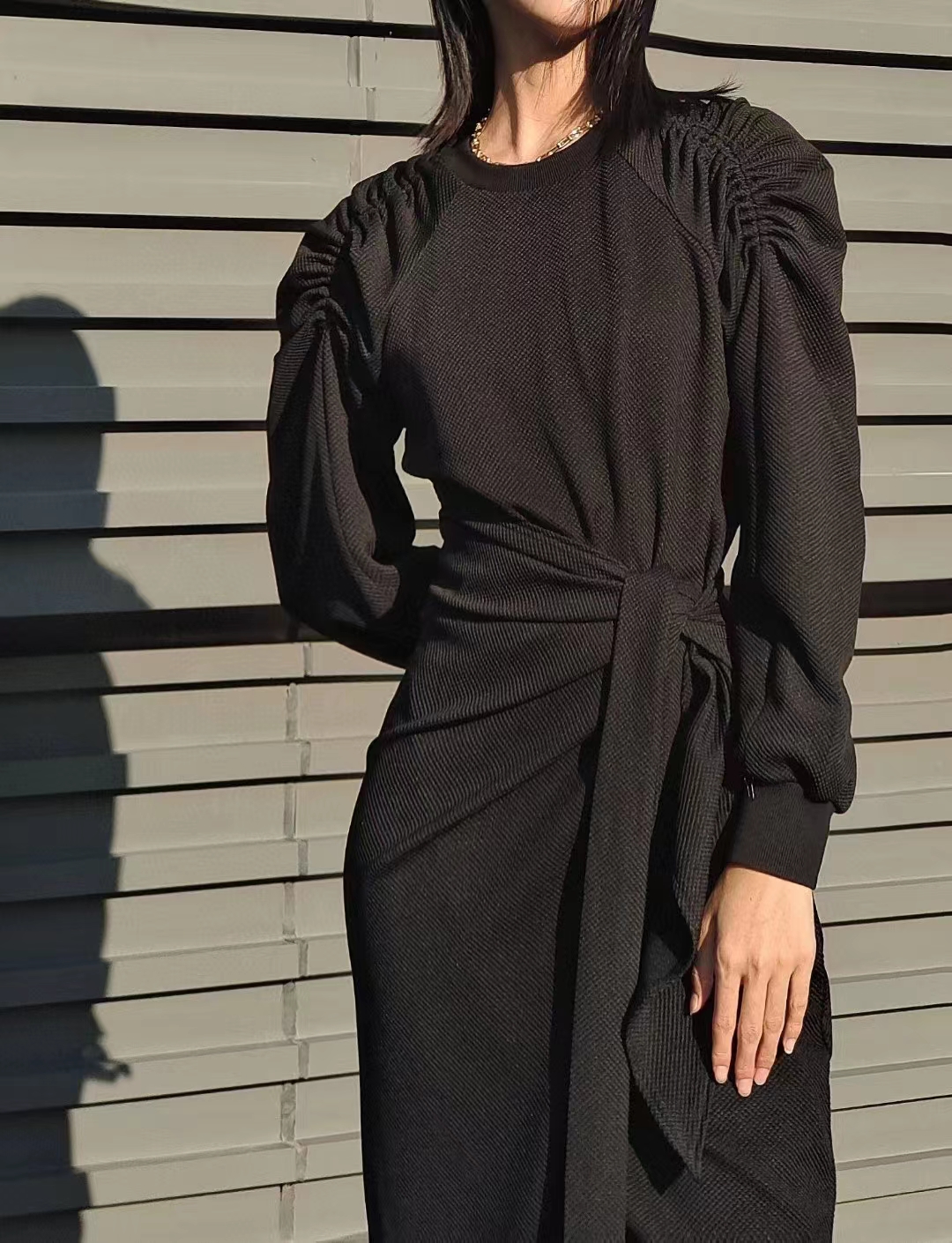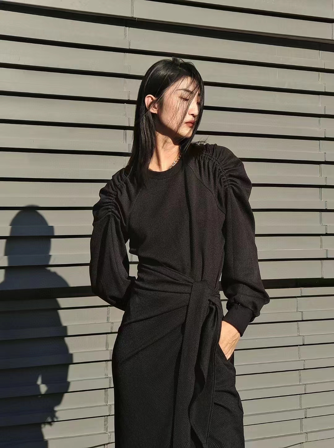 分镜头集成店 SHANG1BY SHANGYI 2022秋冬新品肩部褶皱式连衣裙