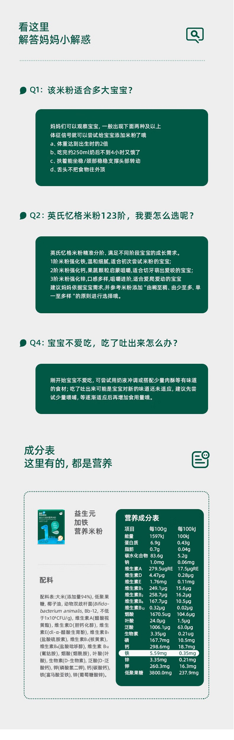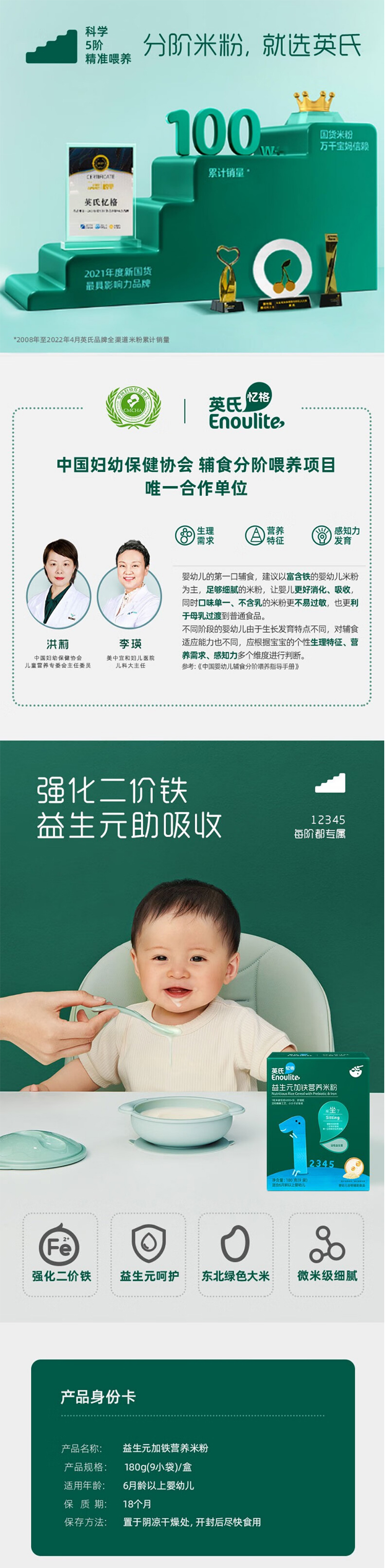 英氏益生元加铁营养米粉180g(20g*9袋)