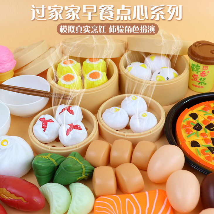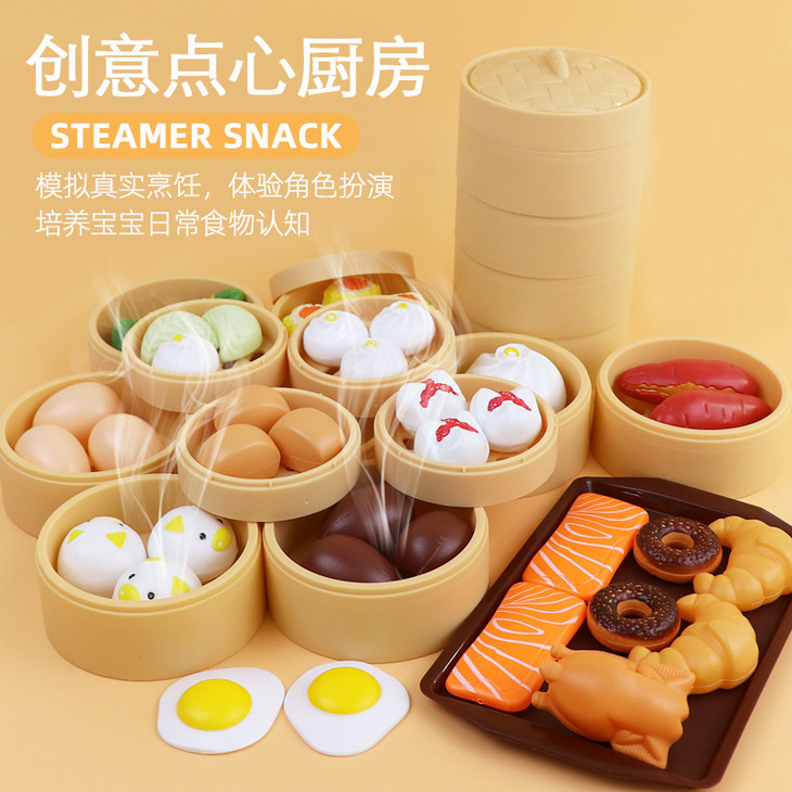 儿童过家家厨房玩具宝宝仿真食物套装幼儿园早教蒸笼做饭早餐