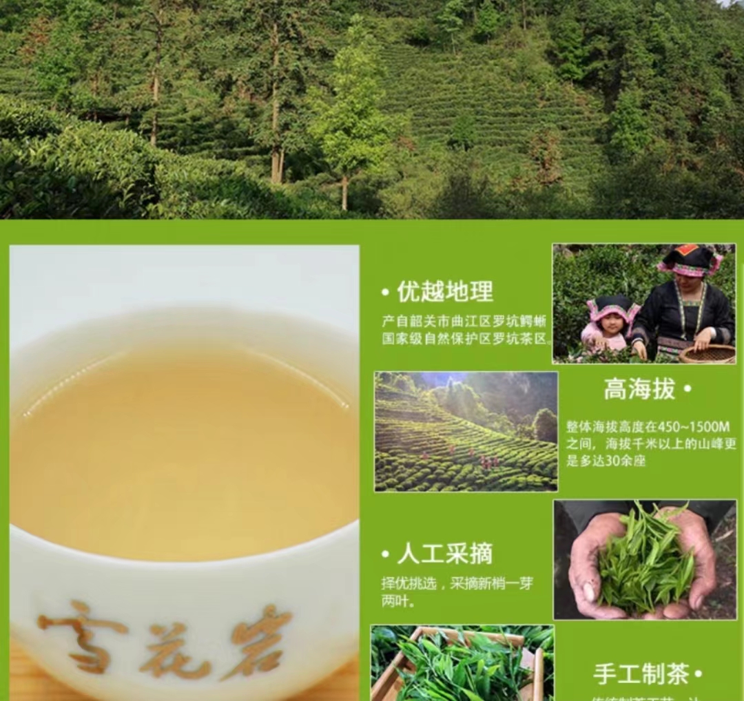 【曲江罗坑雪花岩】 高山有机绿茶 160g/条装 省内包邮