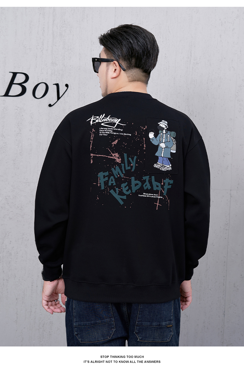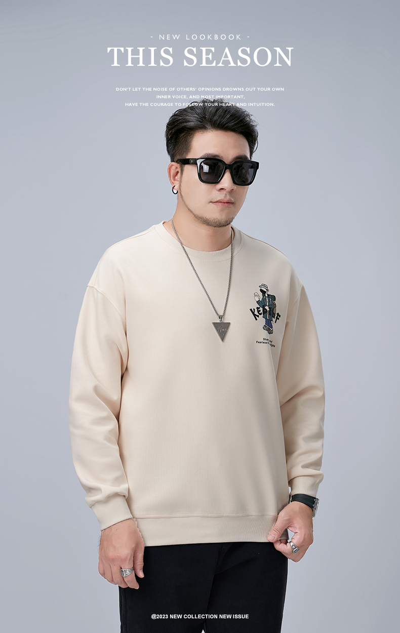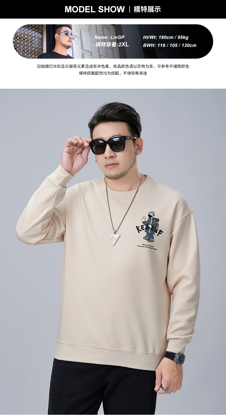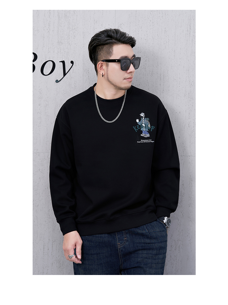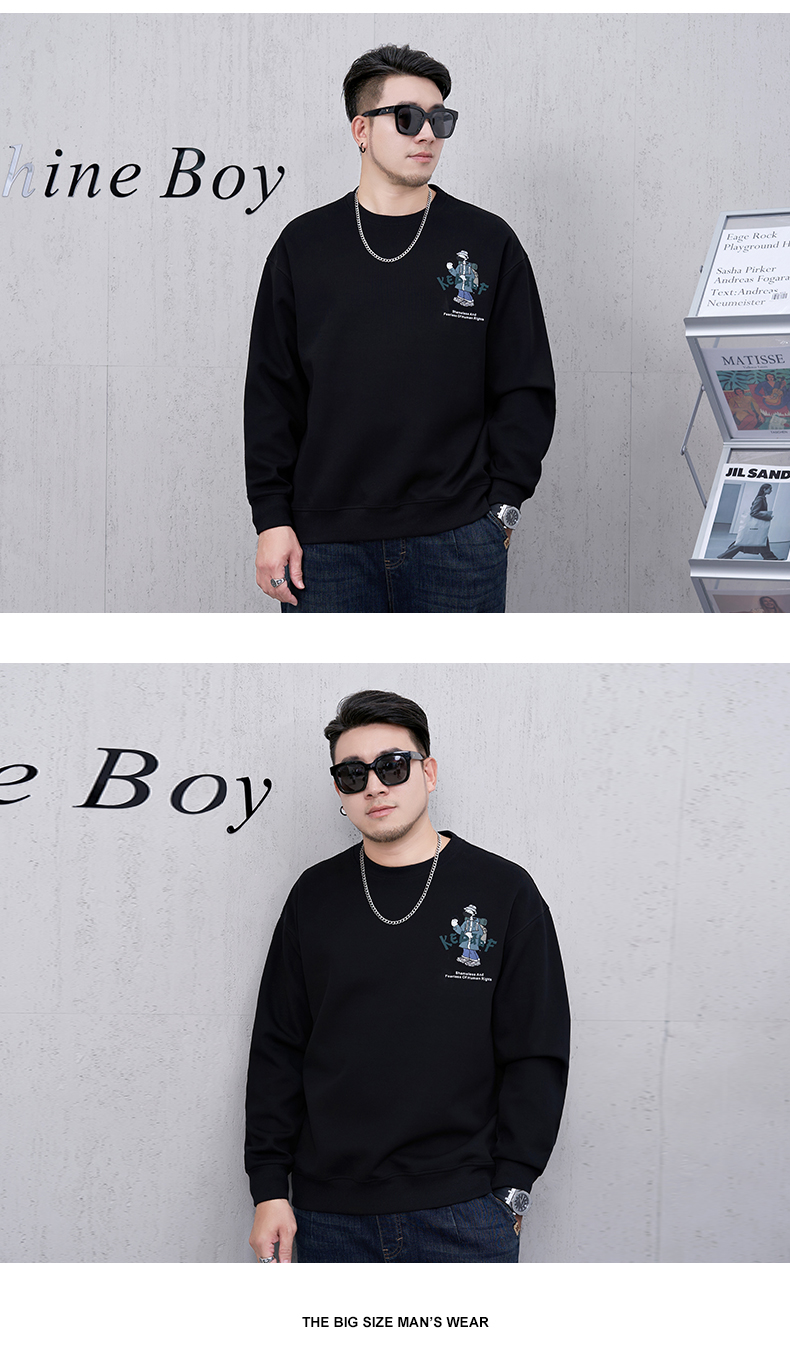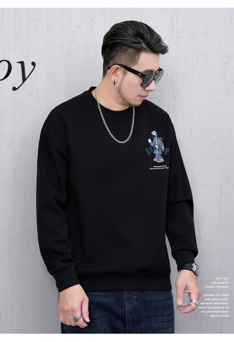 【新款DMH】大依优型大码男装圆领卫衣简约宽松上衣男士胖子打底衫300斤
