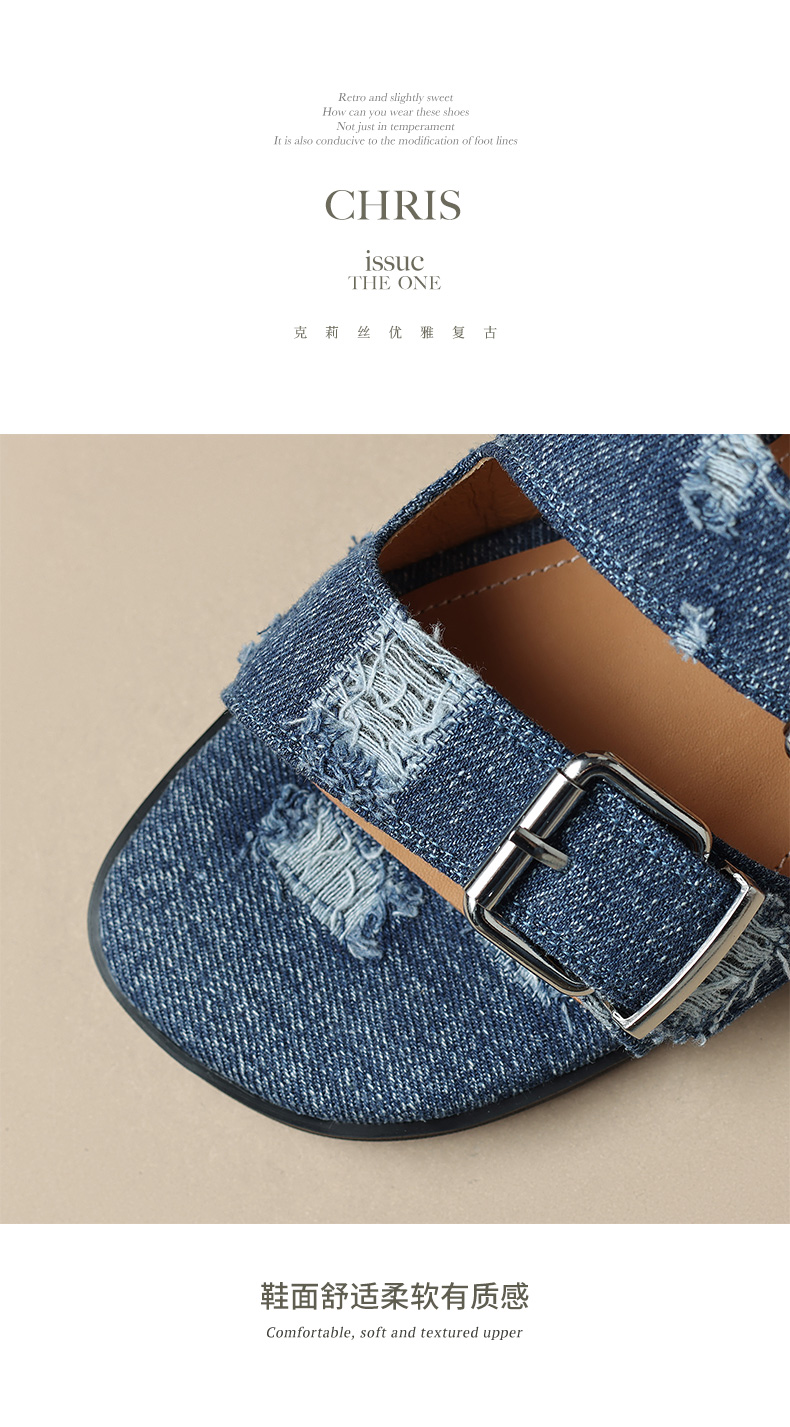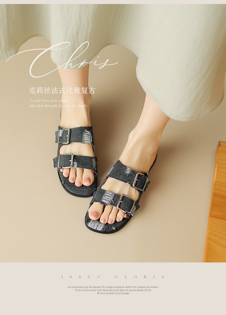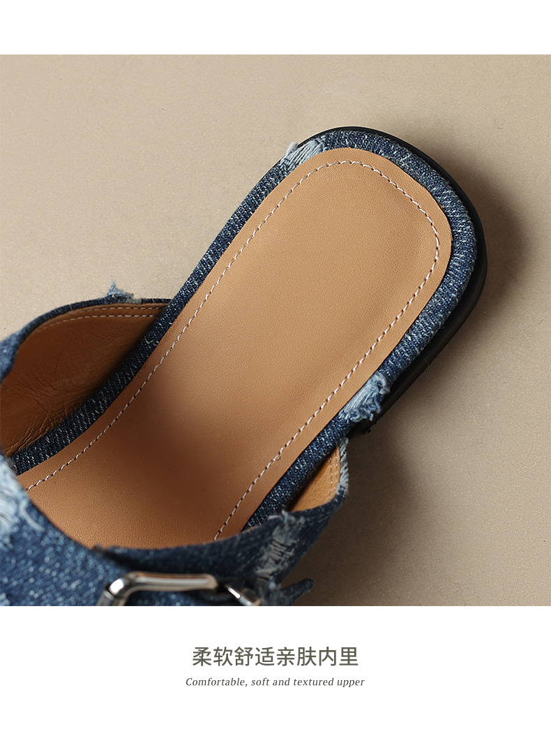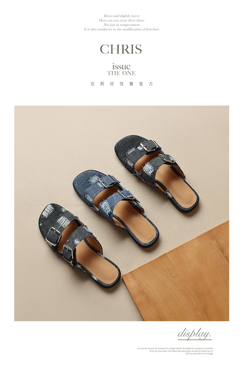 时尚个性,织物搭扣低跟拖鞋HBP-5358