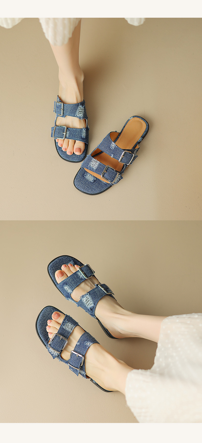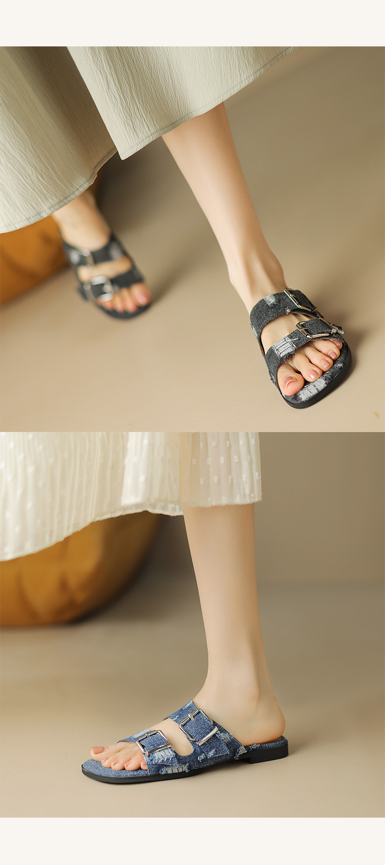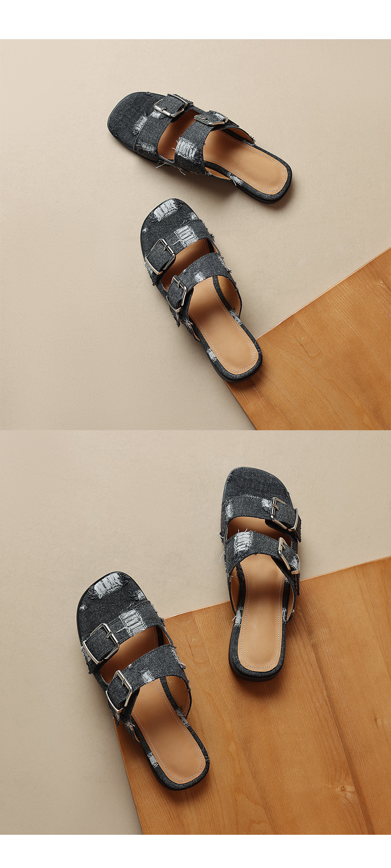时尚个性,织物搭扣低跟拖鞋HBP-5358