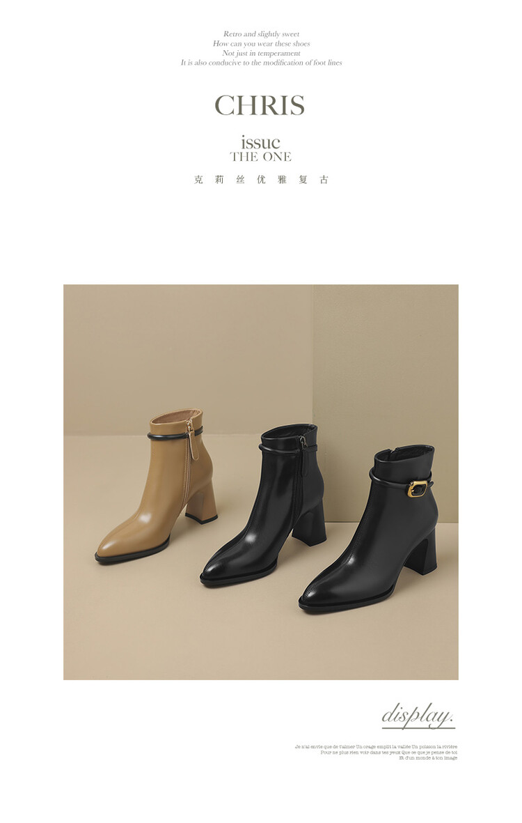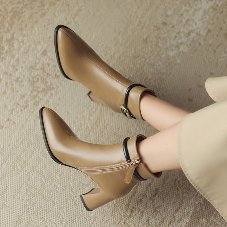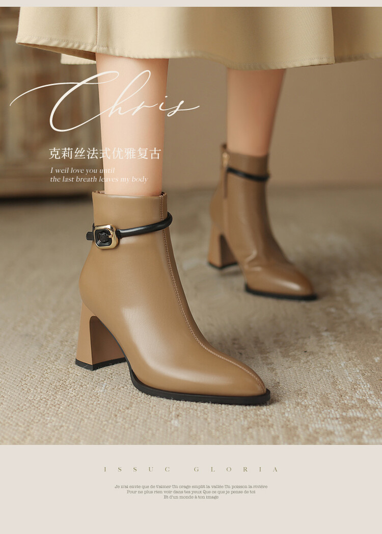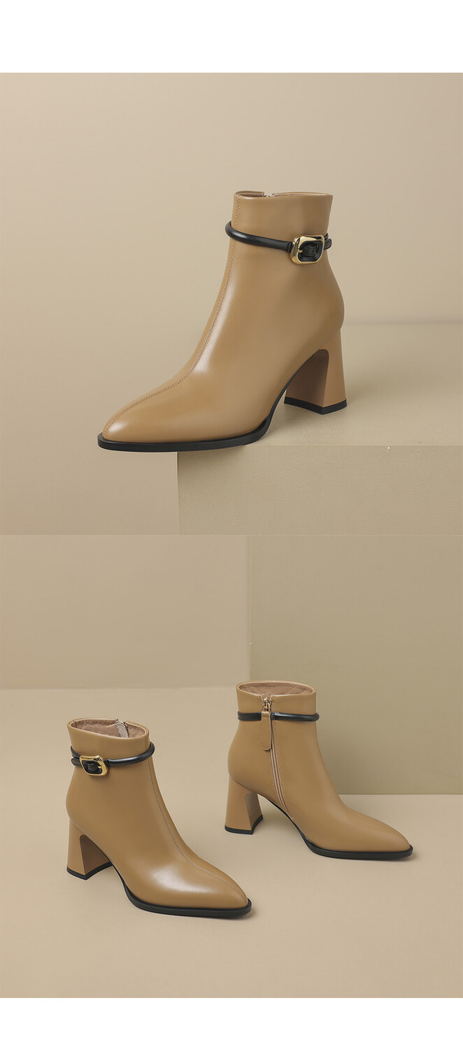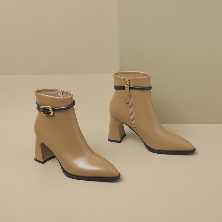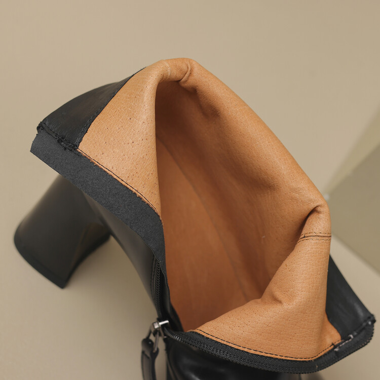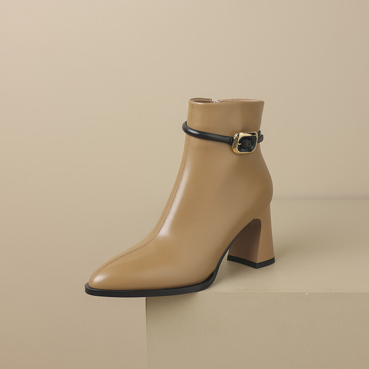 【货 号】A2568【鞋面材质】牛皮【内里材质】猪里皮【垫 脚】猪里皮【鞋底材质】耐磨橡胶底【跟 高】7.5厘米【颜 色】黑色/杏色【尺 码】34-39