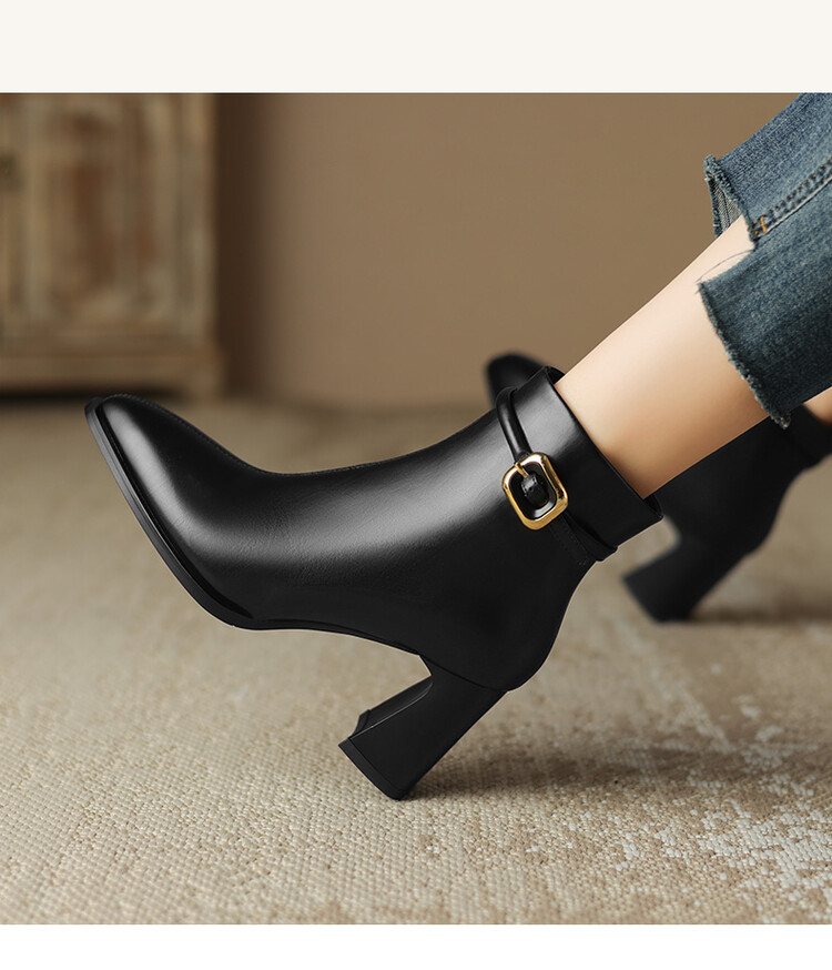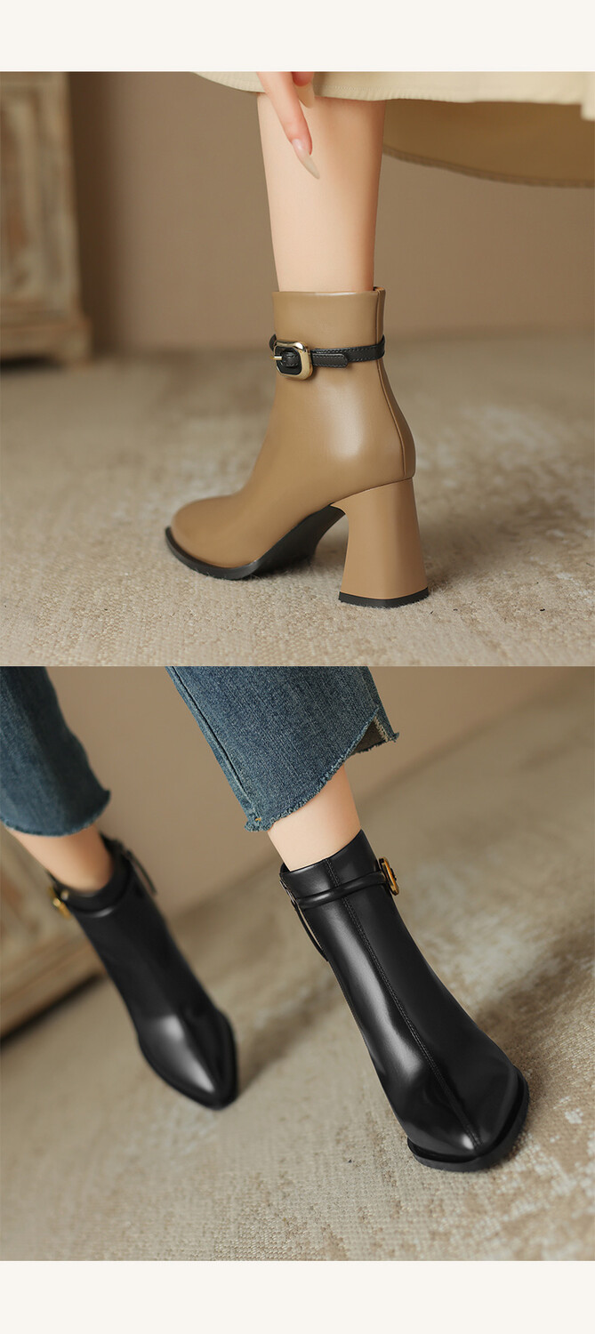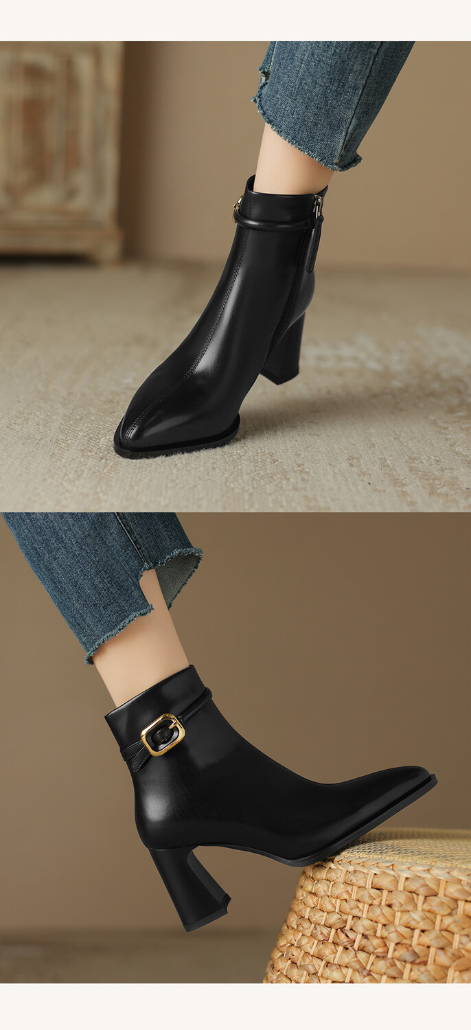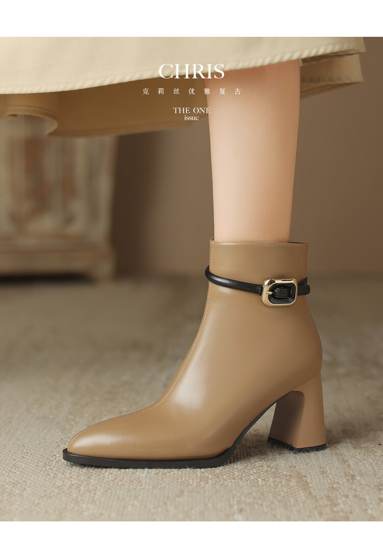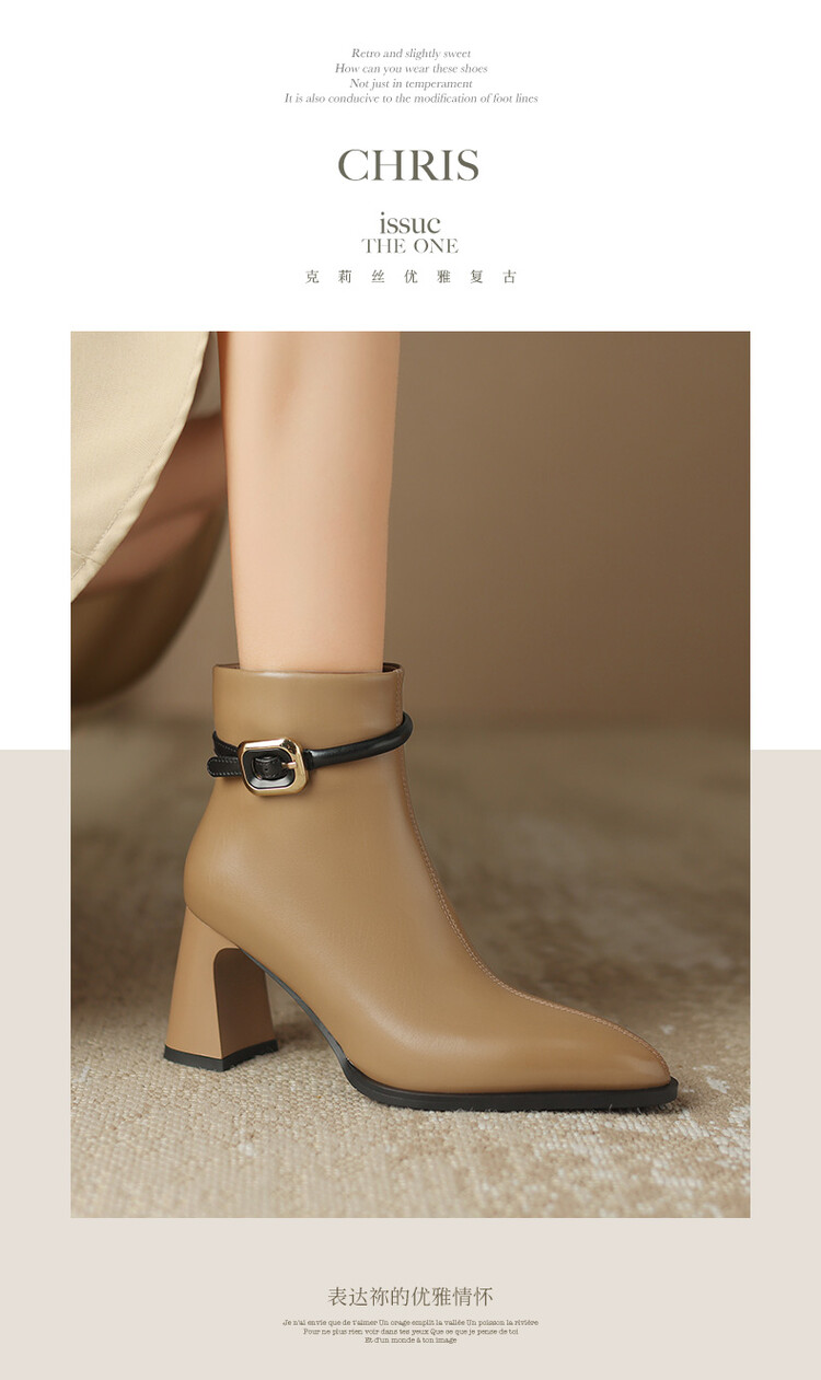【货 号】A2568【鞋面材质】牛皮【内里材质】猪里皮【垫 脚】猪里皮【鞋底材质】耐磨橡胶底【跟 高】7.5厘米【颜 色】黑色/杏色【尺 码】34-39