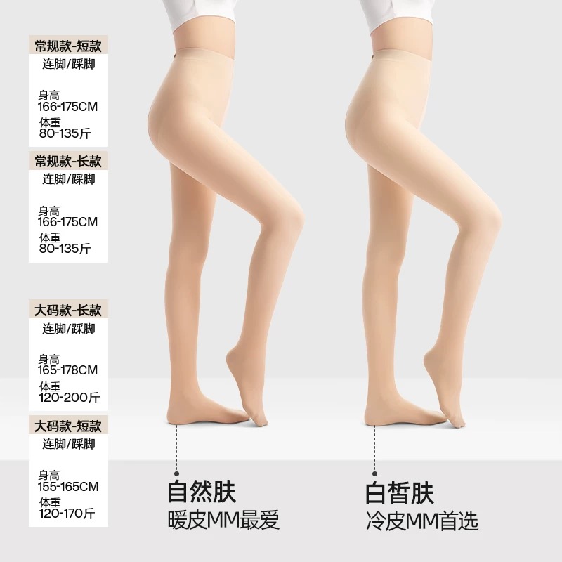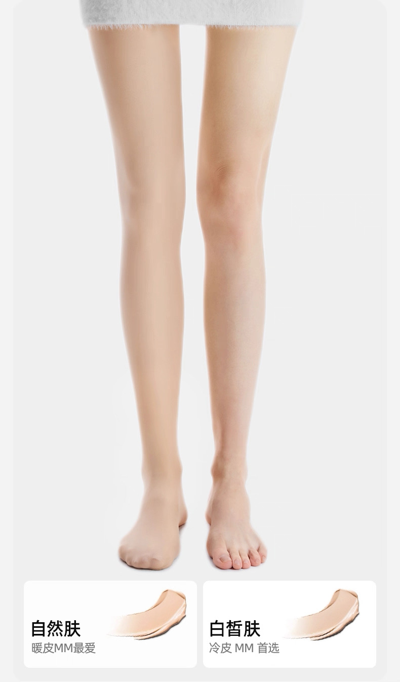 自然肤,白皙肤两种安排,小野拟肤调色技术,采集中国女性肤色数据,模拟她们的天然肤色进行调色,颜色更自然,还原妈生感光腿