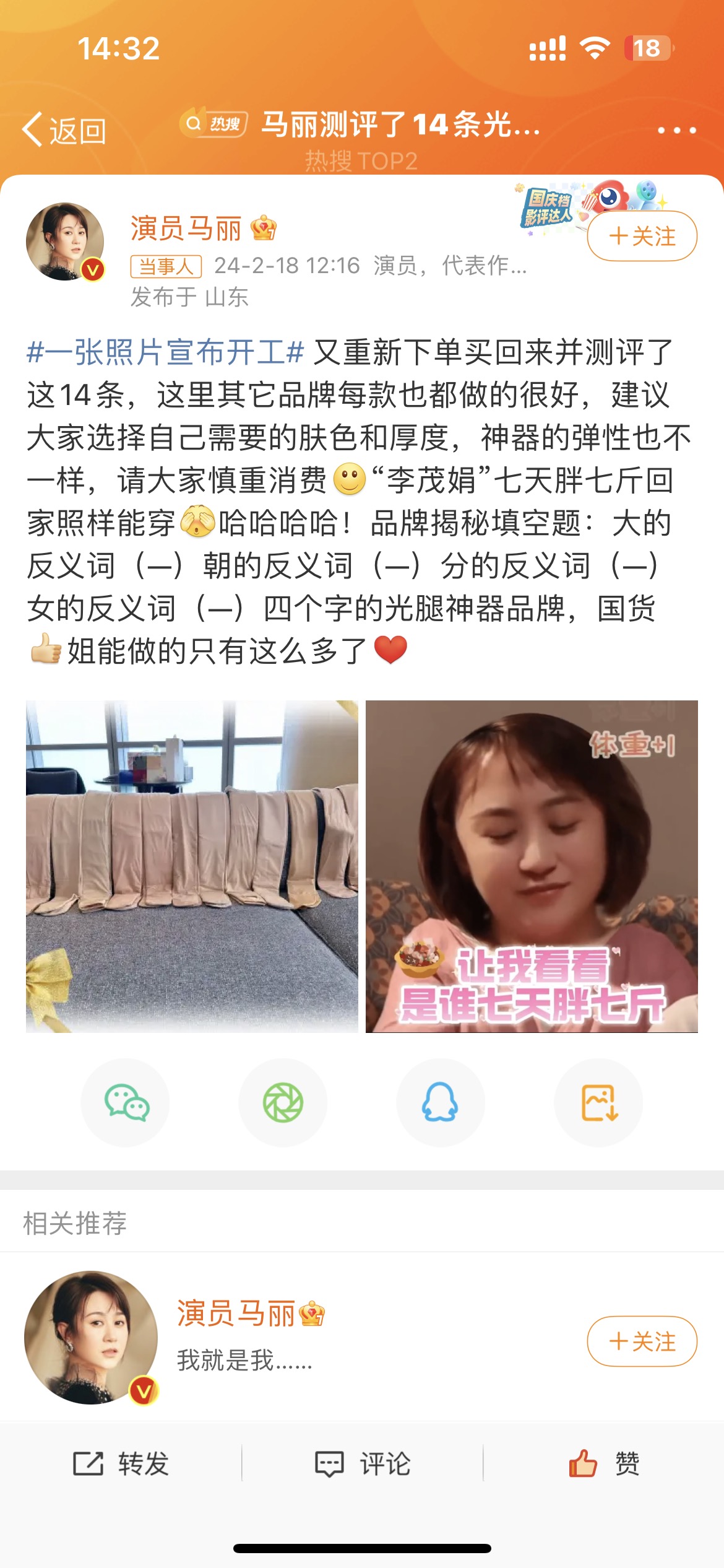 是谁在春晚一眼相中了马丽的光腿神器? 一生要链接的中国女人名不虚传! 被马丽从14条光腿神器中精挑细选出来的。就是我们四字品牌家的光腿神器!