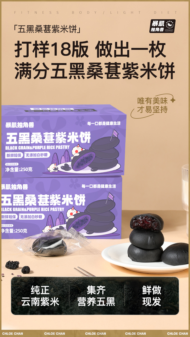 【暴肌独角兽 五黑桑葚饼】紫米、芋泥,代餐减低脂0食品代早餐欧包粗粮无糖精