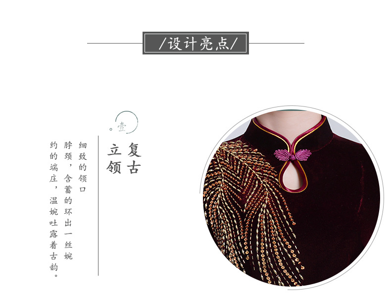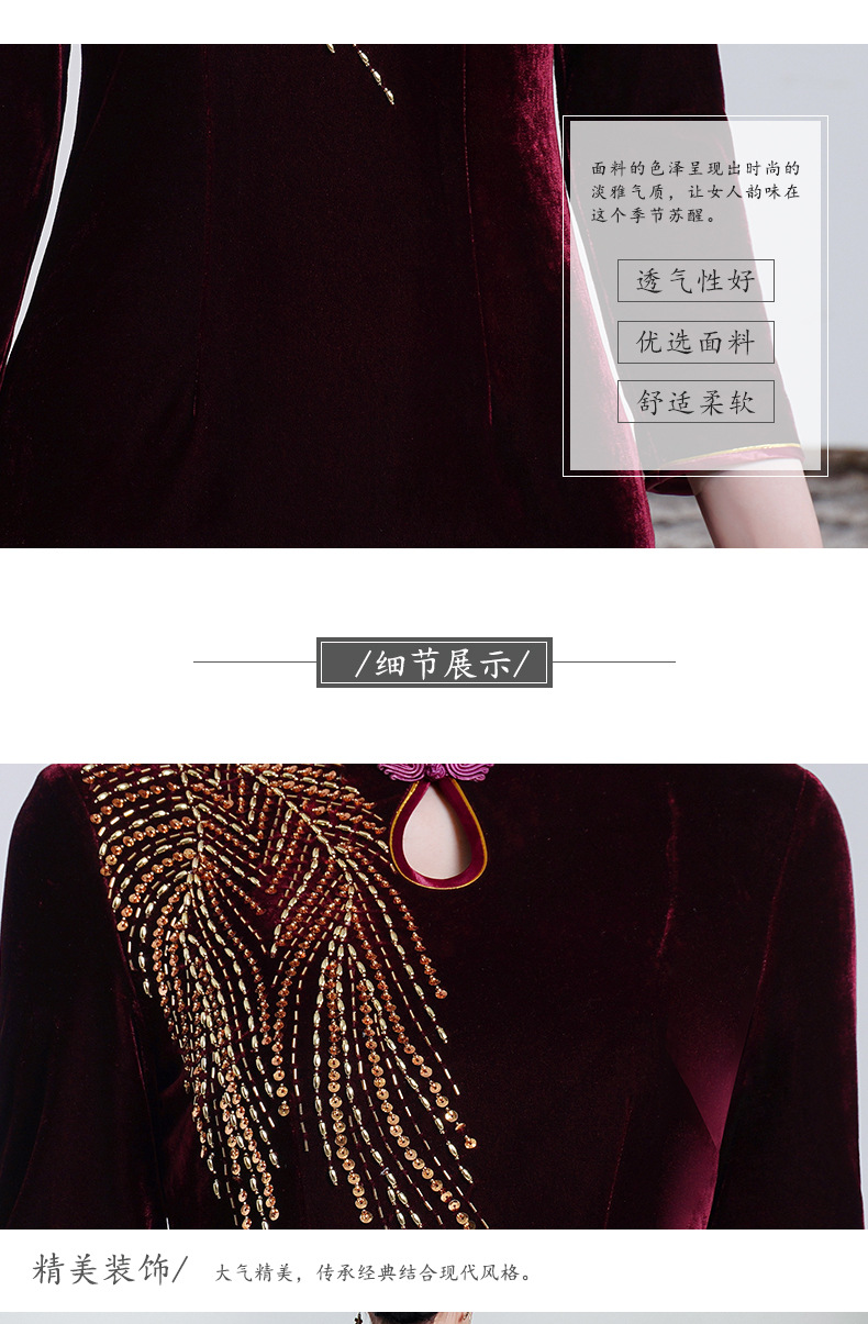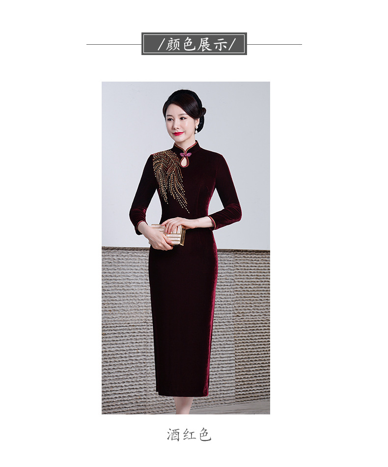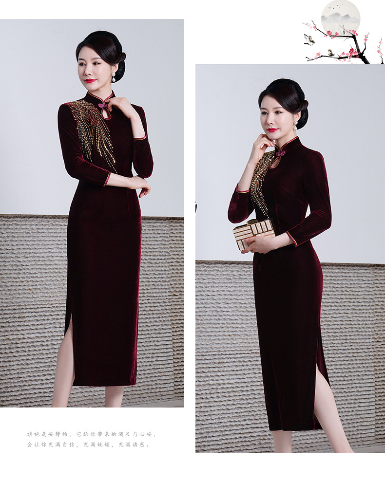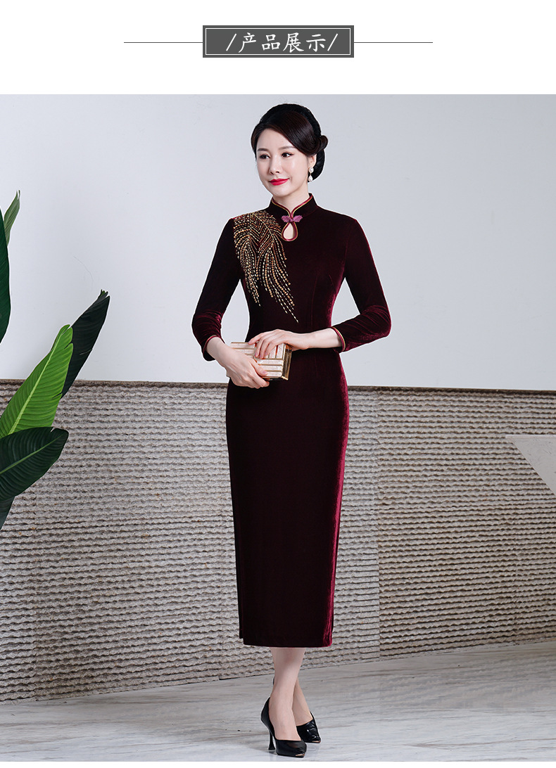 改良丝绒旗袍长款长袖喜婆婆婚敬酒服HYX7652