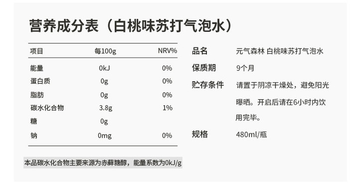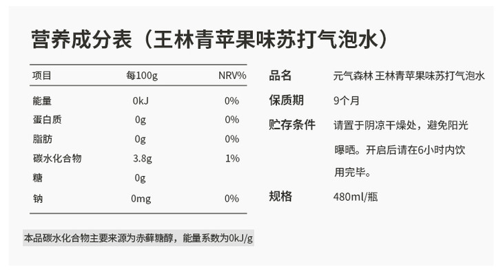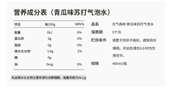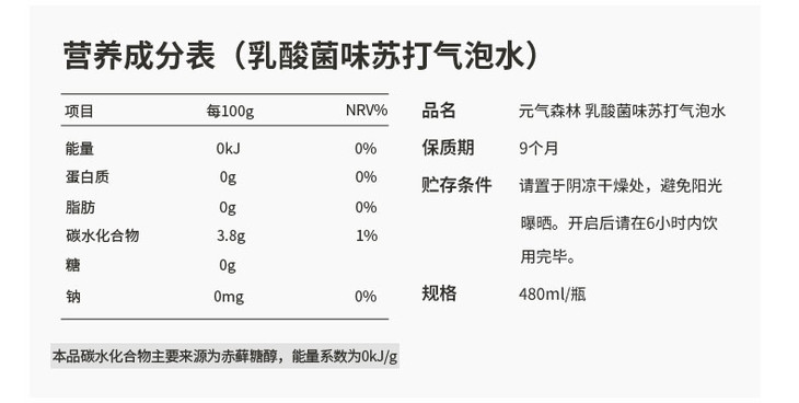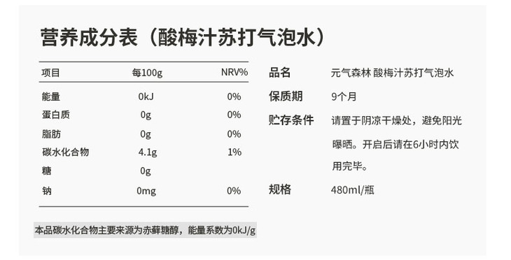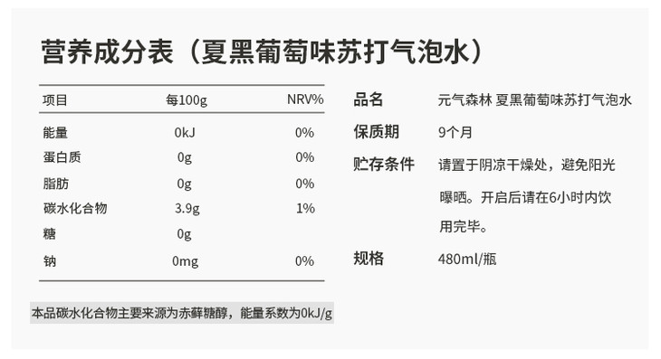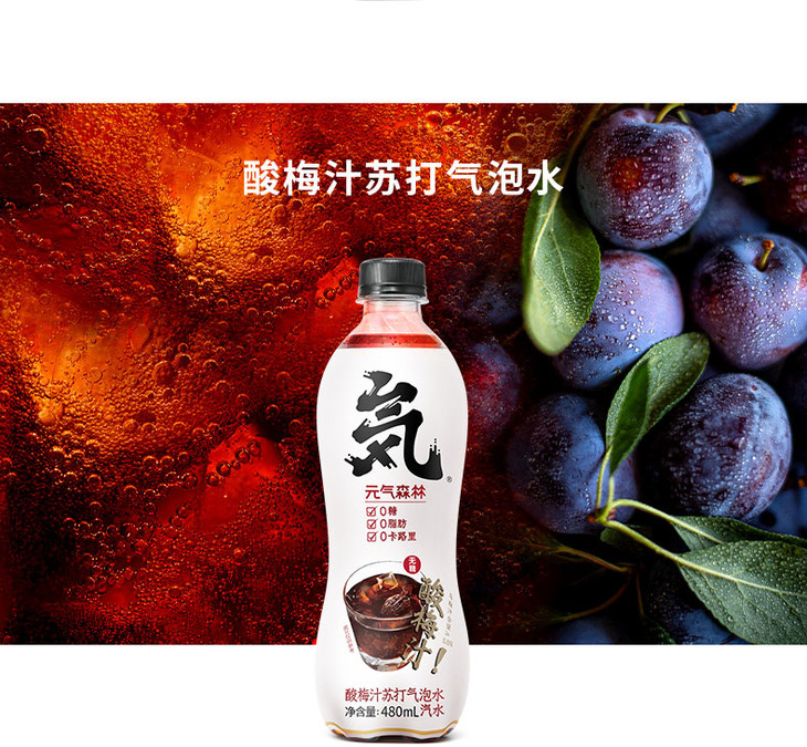 480ml元気森林夏黑葡萄味苏打汽水