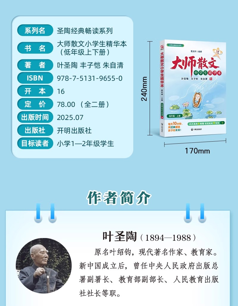 大师散文小学生精华本 低高年级上下册用经典塑造孩子的未来叶圣陶丰子恺朱自清促进孩子写作能力提升