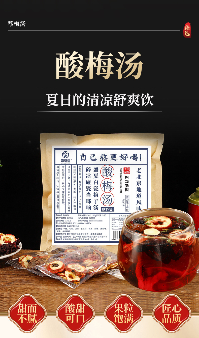 【夏日炎炎,来碗酸梅汤吧~】酸梅汤原料包 真材实料 老北京酸梅汤 夏季自煮乌梅茶 水果茶酸梅汤-QQ