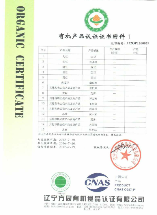 绿豆有机认证证书