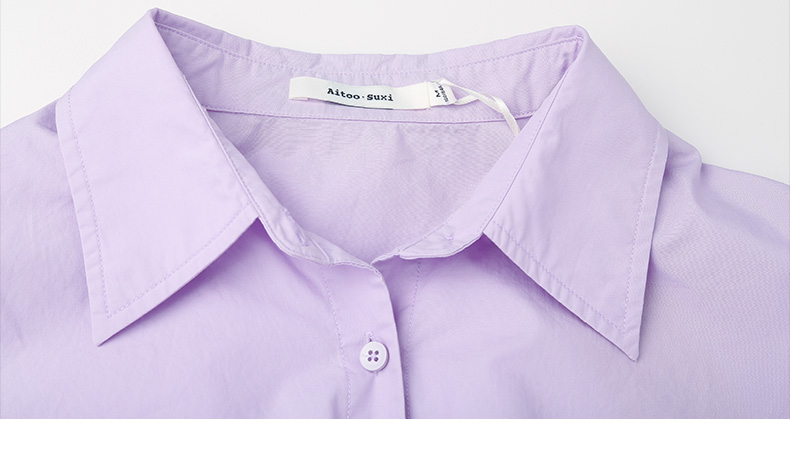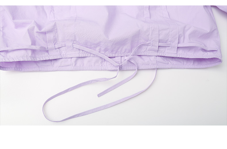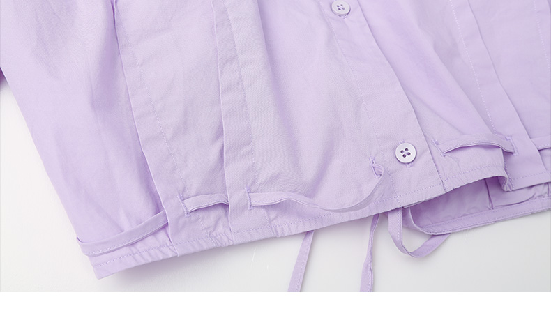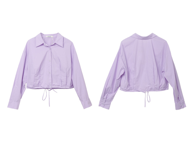 韩系温柔浅紫短款衬衫 抽绳收腰设计感小众 显瘦显高长袖上衣