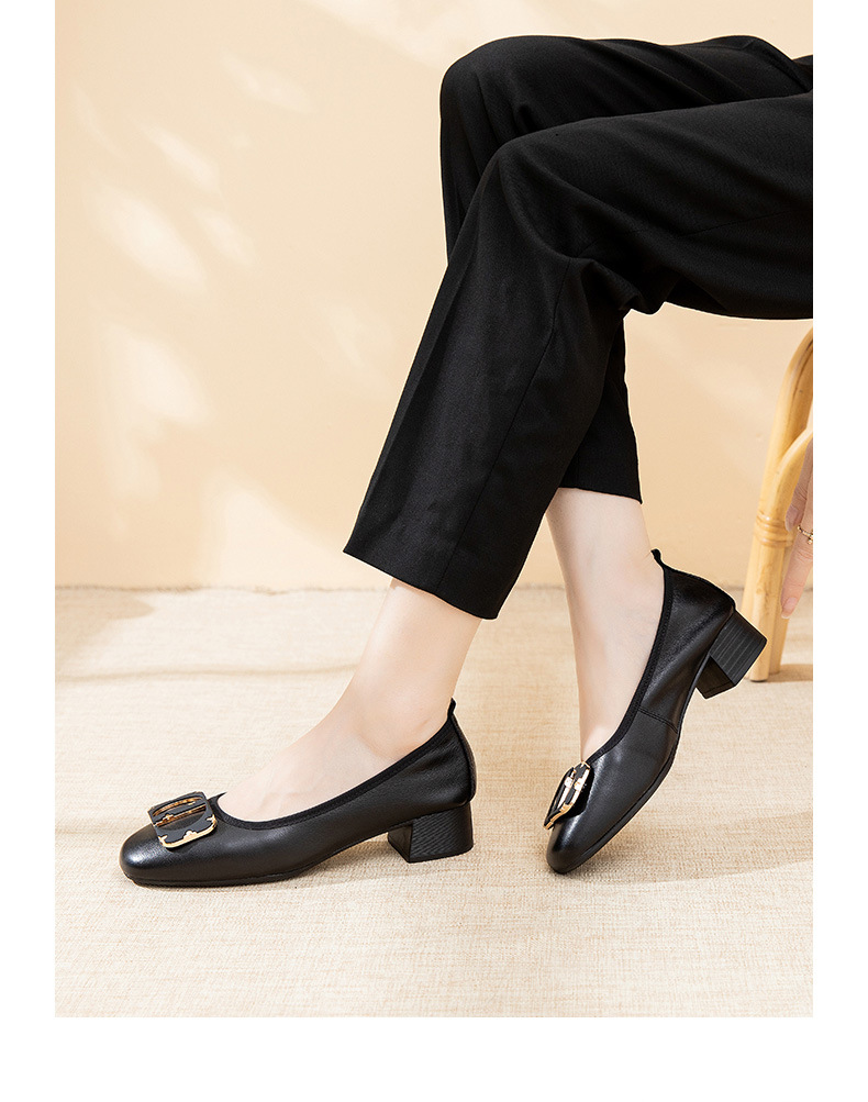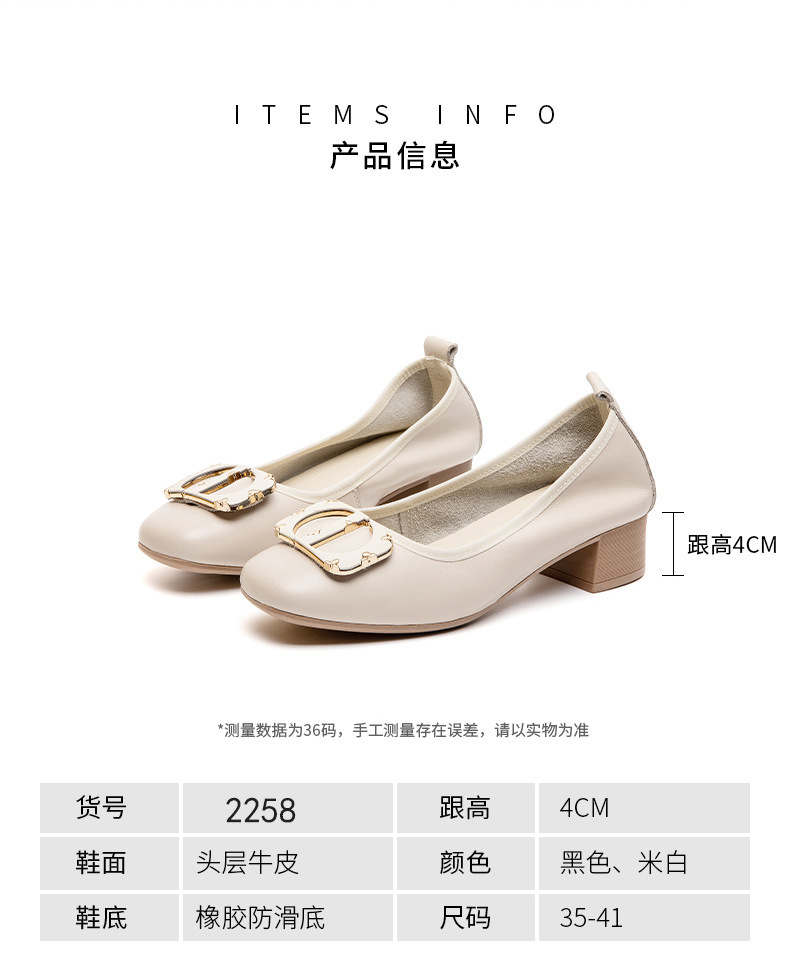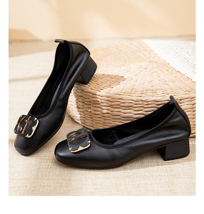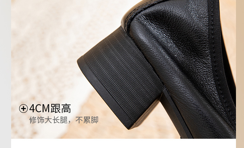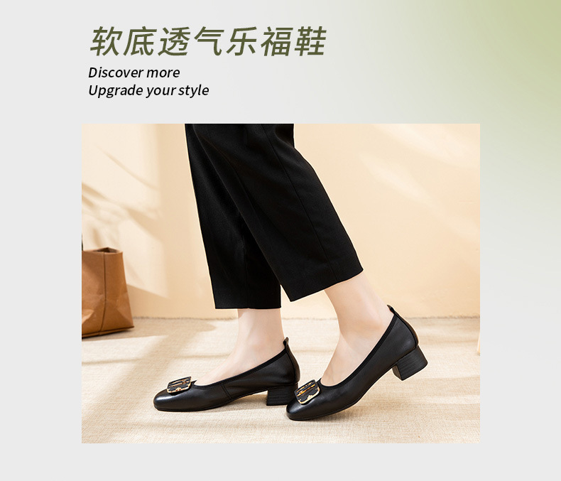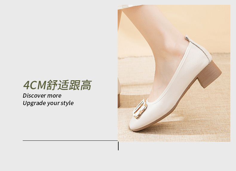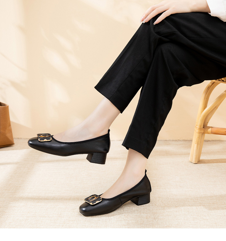 真皮粗跟浅口妈妈单鞋,中跟软底女鞋MLD2258