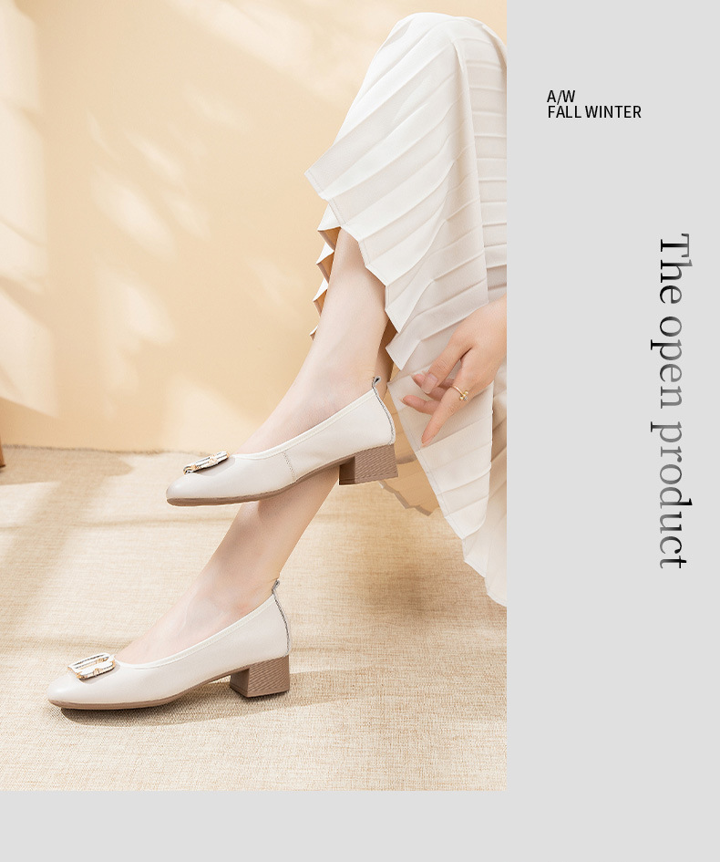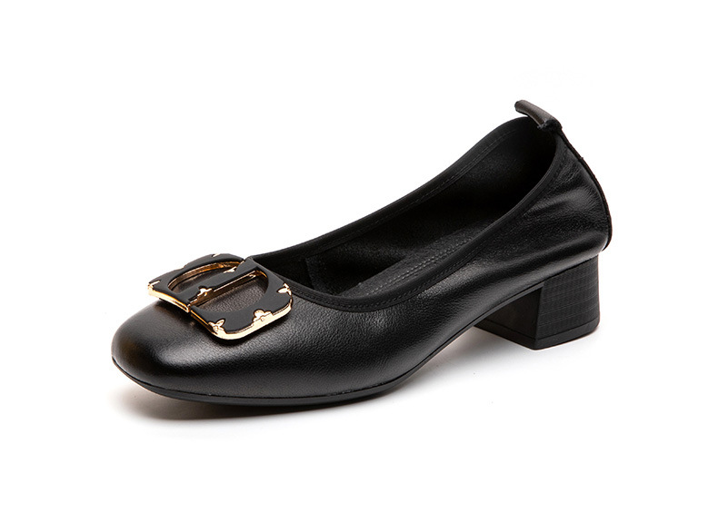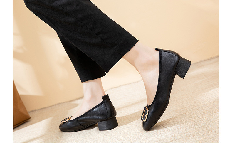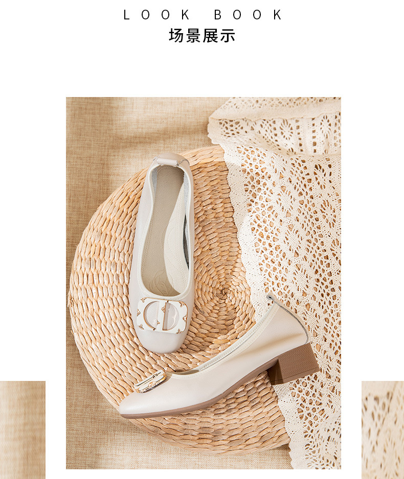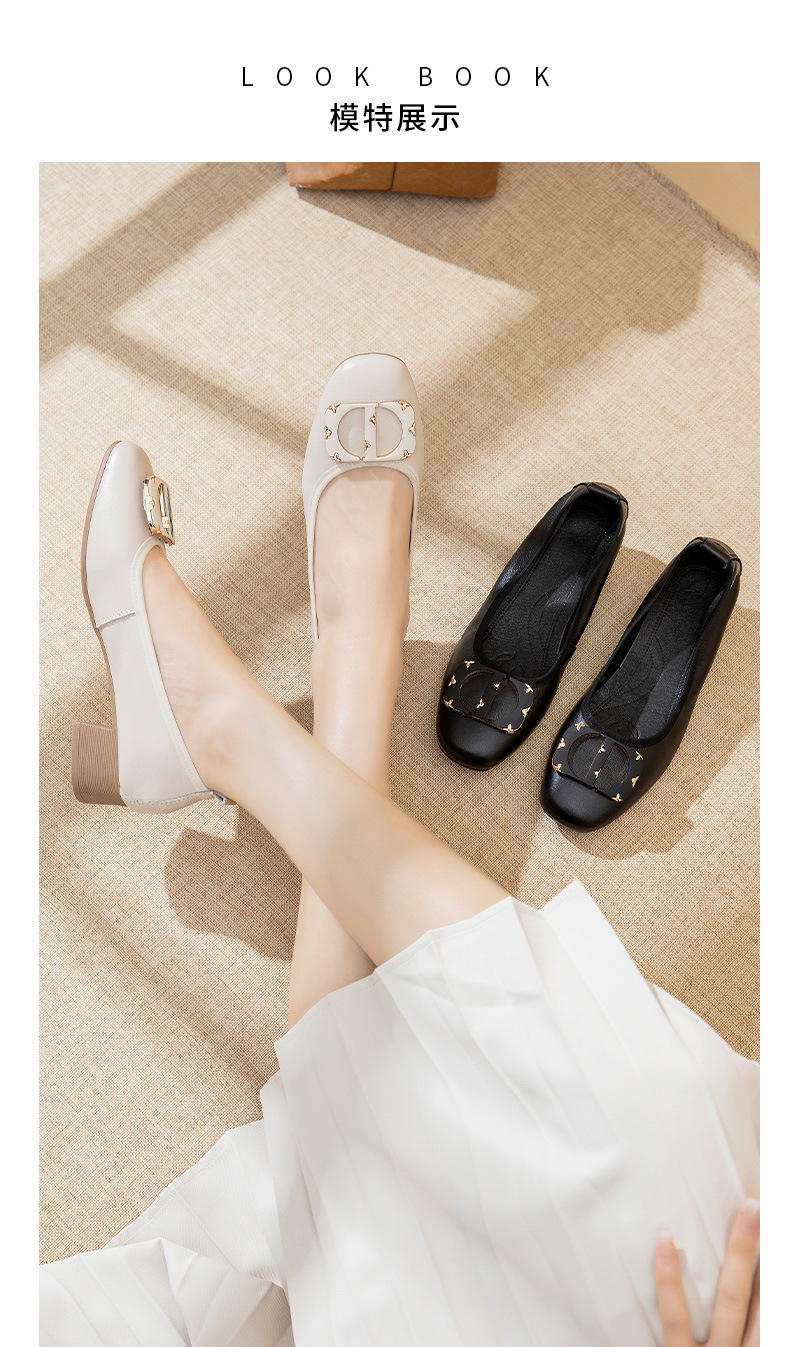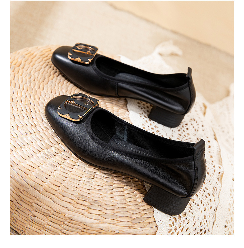 真皮粗跟浅口妈妈单鞋,中跟软底女鞋MLD2258