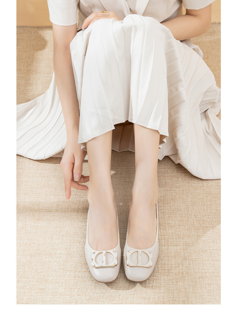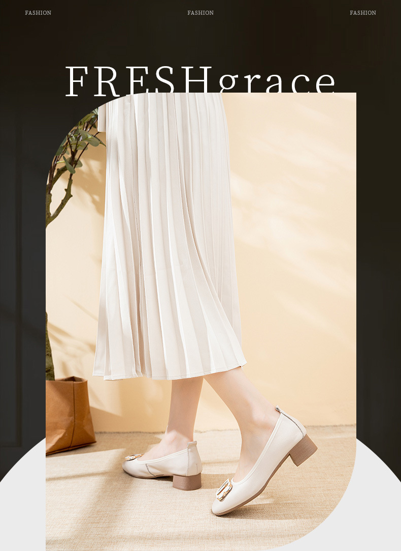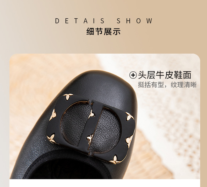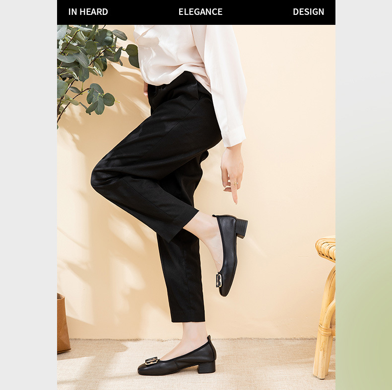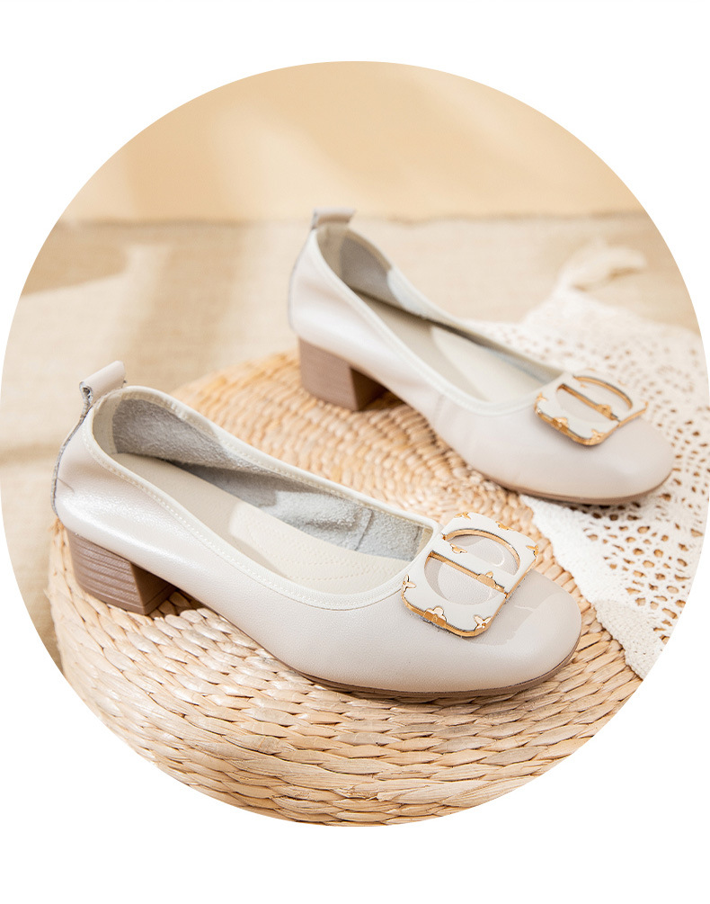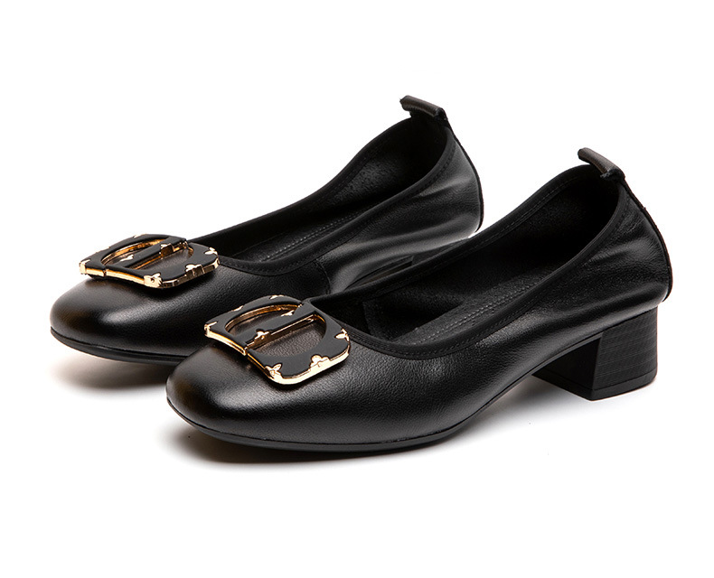 真皮粗跟浅口妈妈单鞋,中跟软底女鞋MLD2258