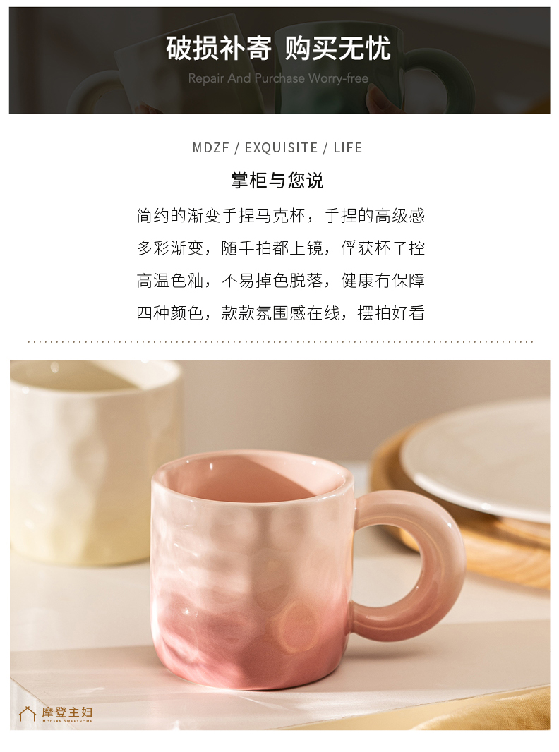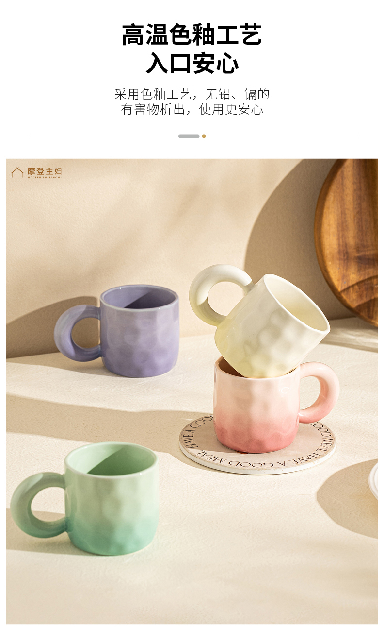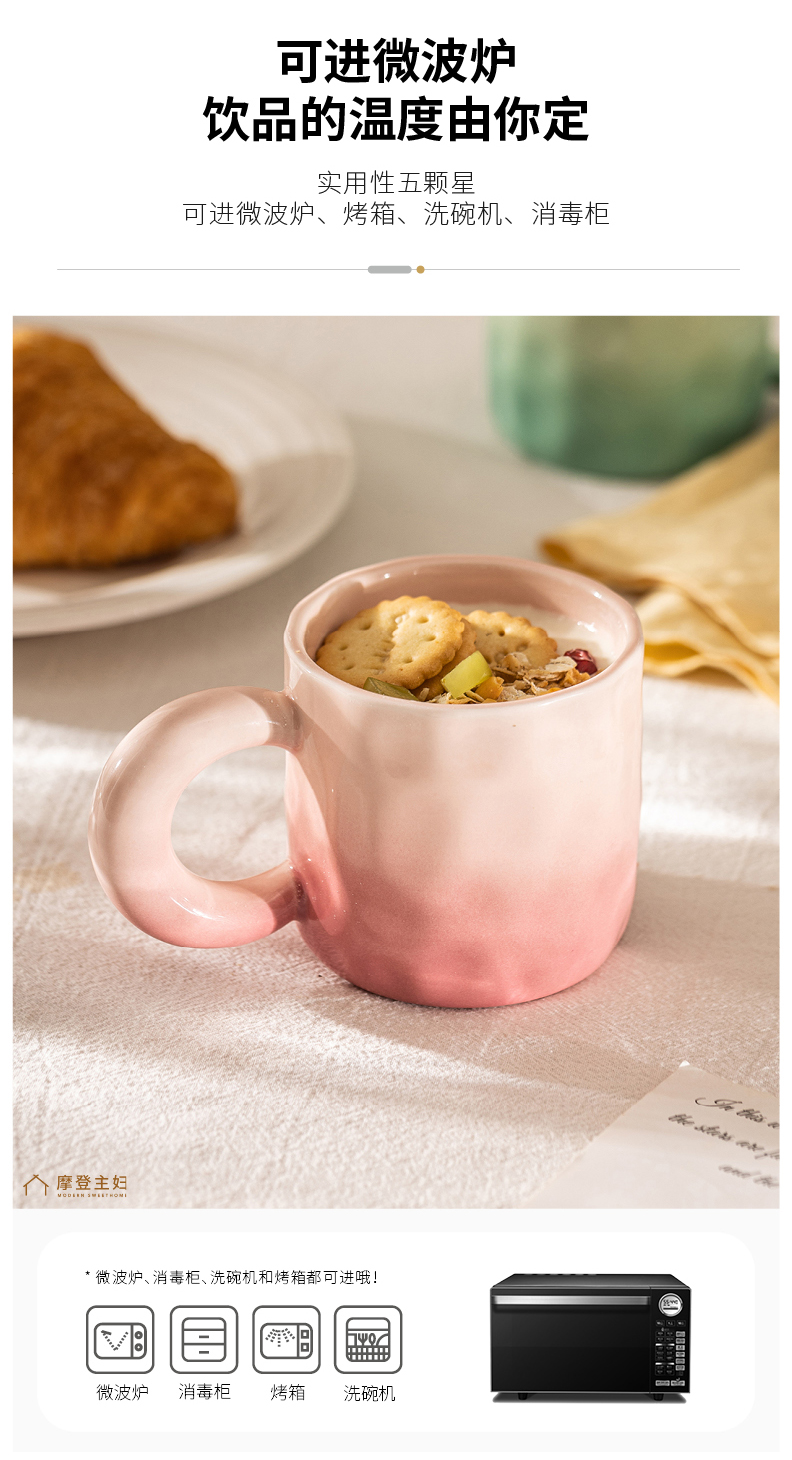 摩登主妇渐变马克杯陶瓷杯家用水杯女生情侣早餐杯办公室咖啡杯子