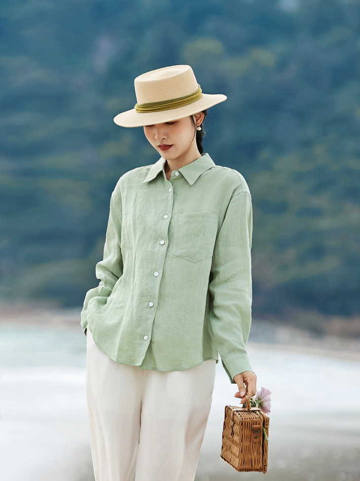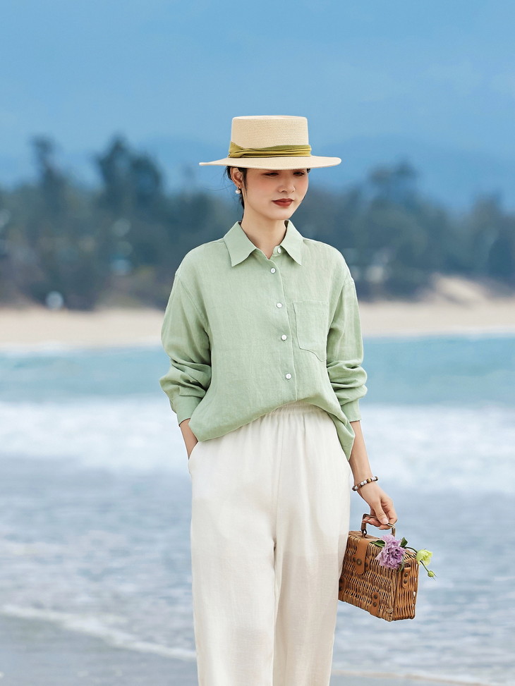 自然极简设计感,宽松亚麻衬衫文艺衬衣上衣长袖HS26804