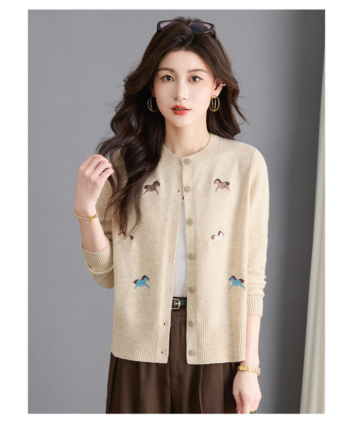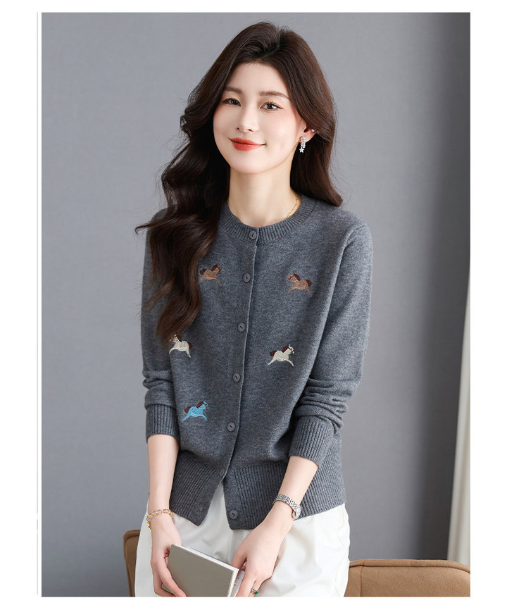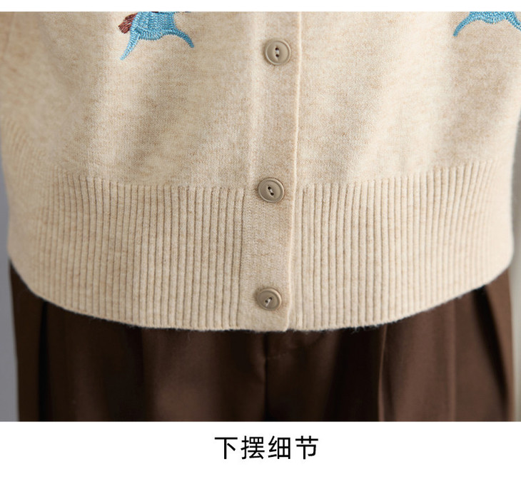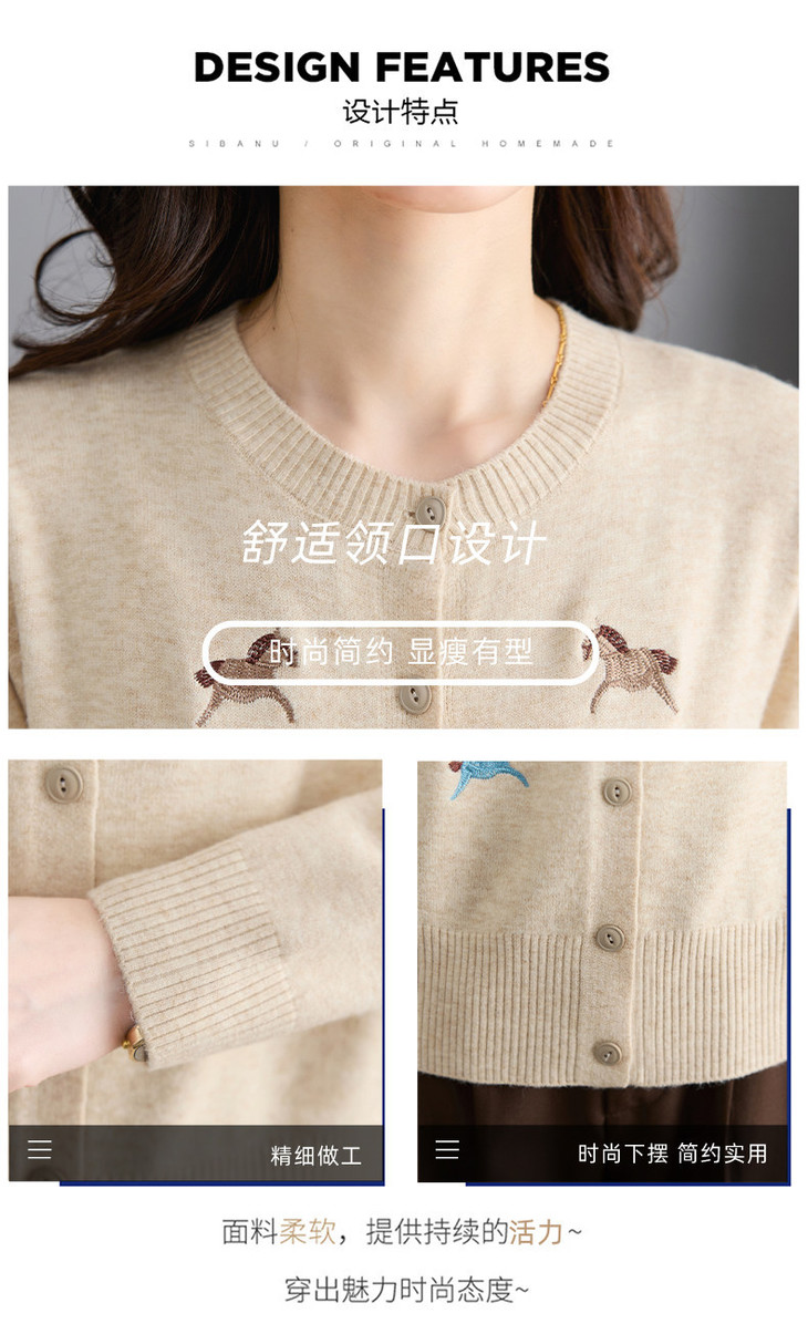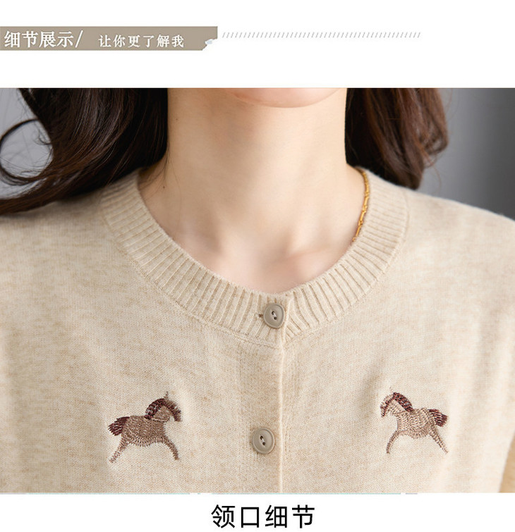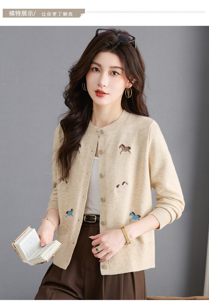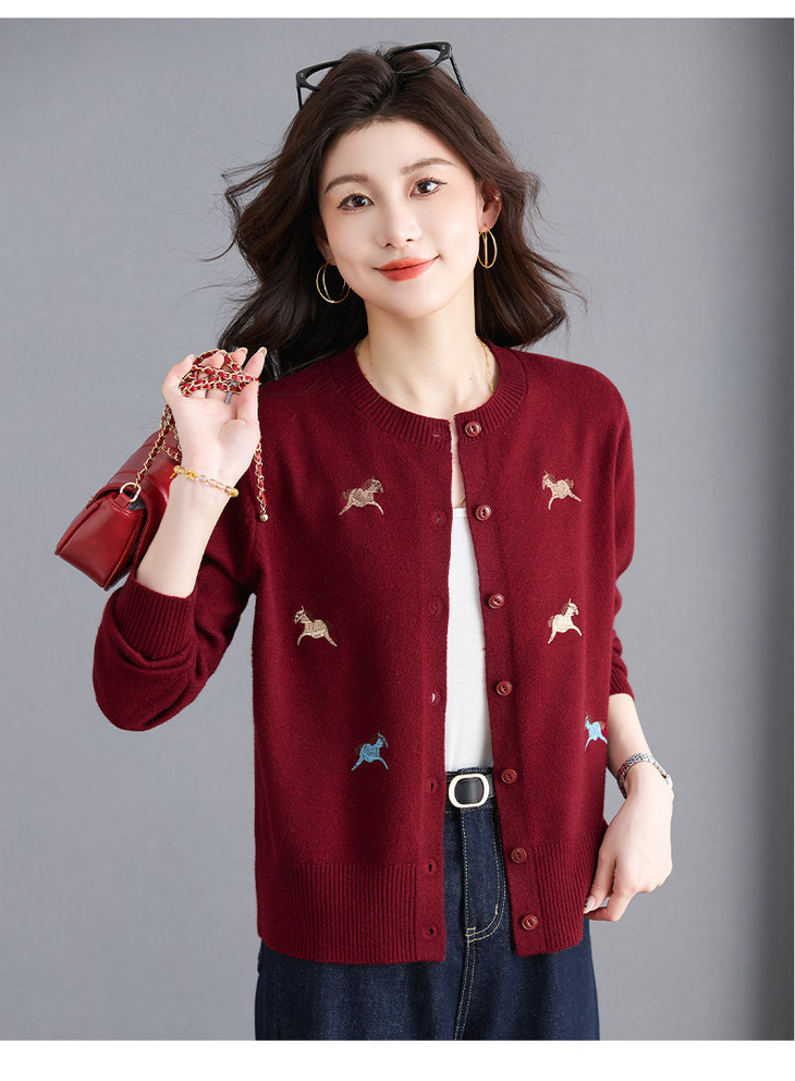 圆领刺绣针织开衫,纽扣毛衣外套修身显瘦上衣CC-103-C8125