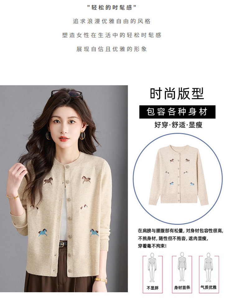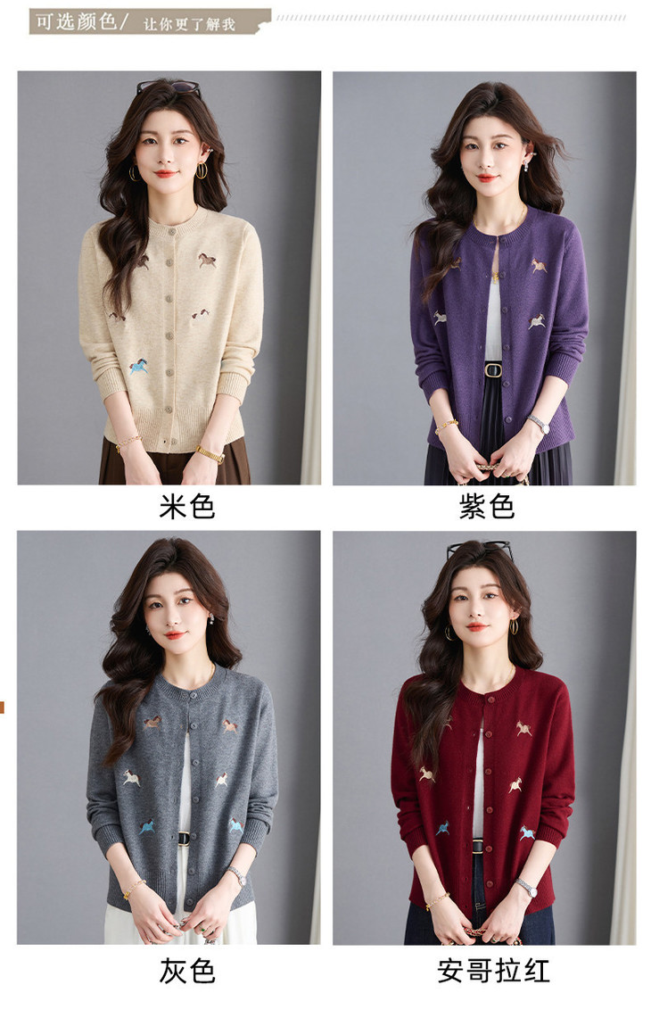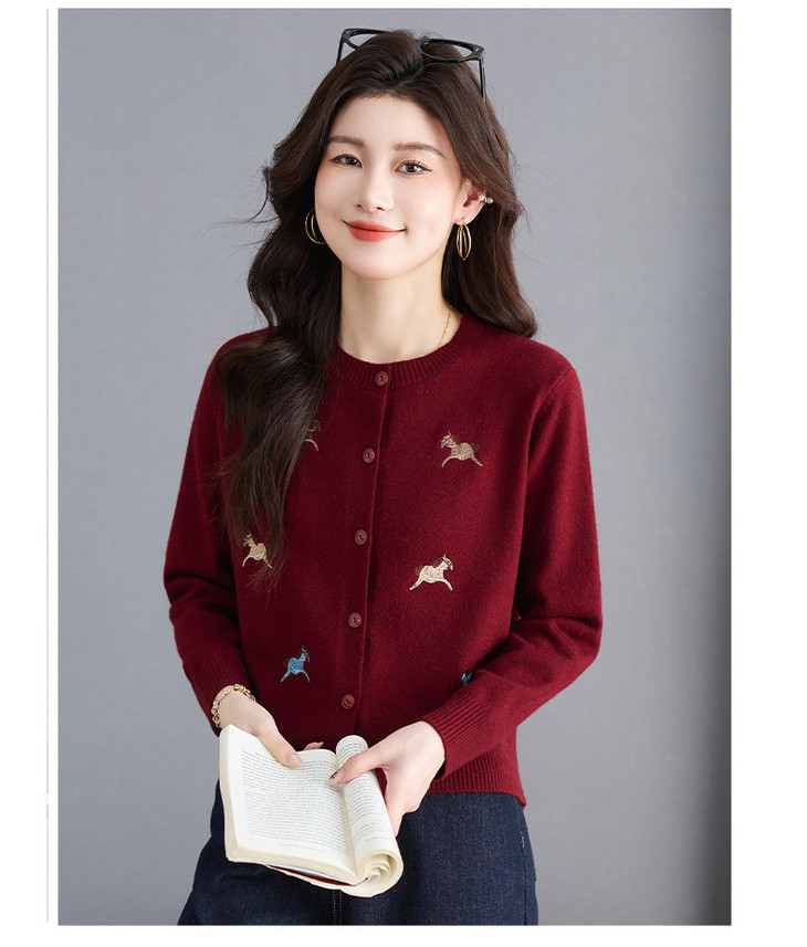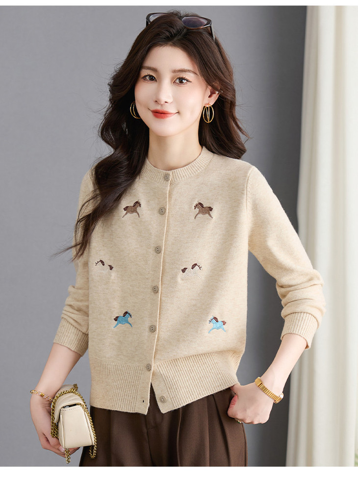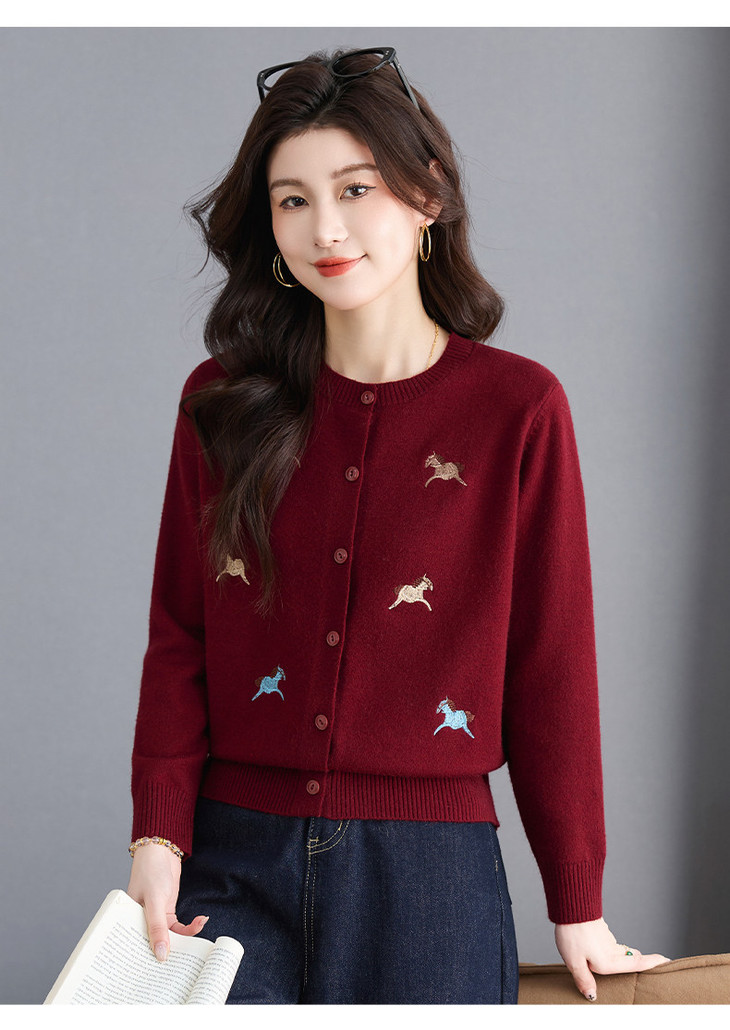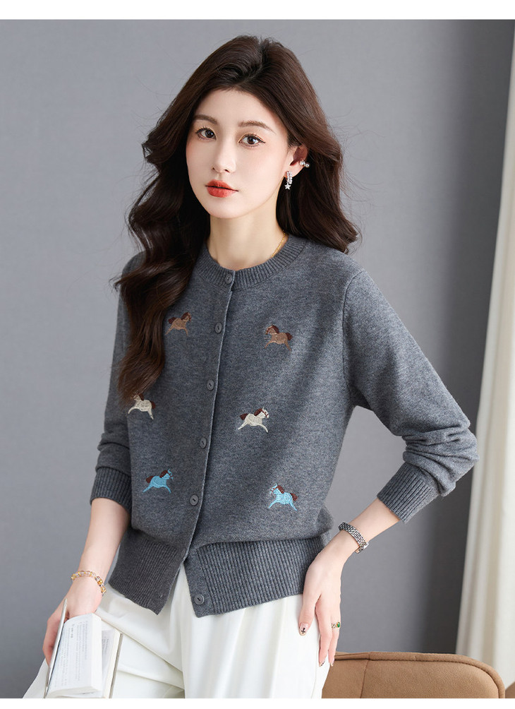 圆领刺绣针织开衫,纽扣毛衣外套修身显瘦上衣CC-103-C8125