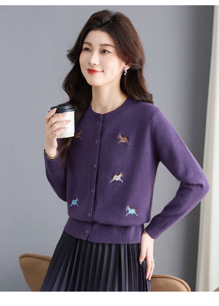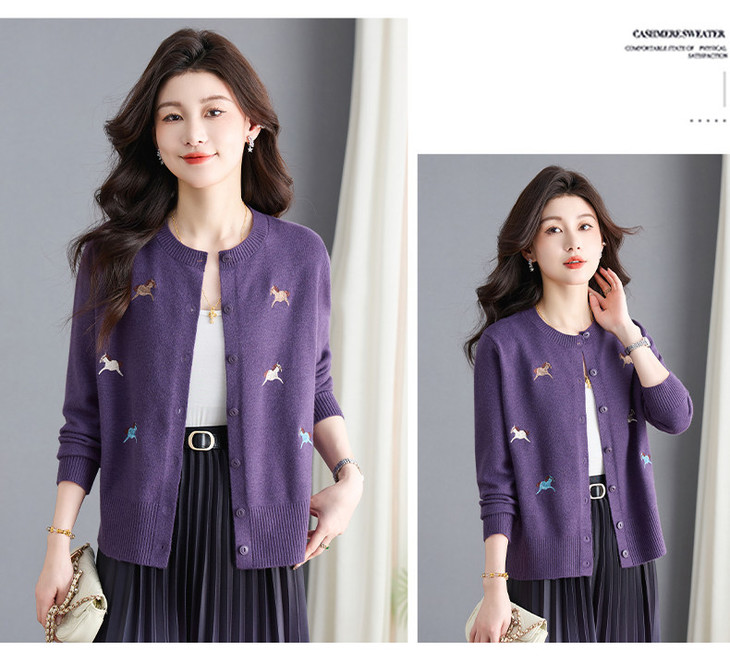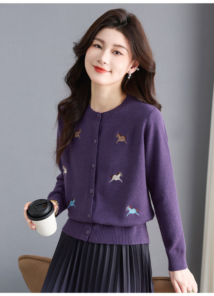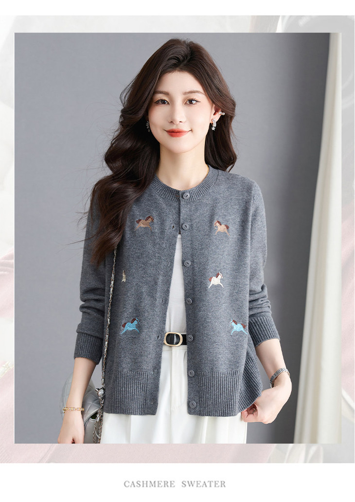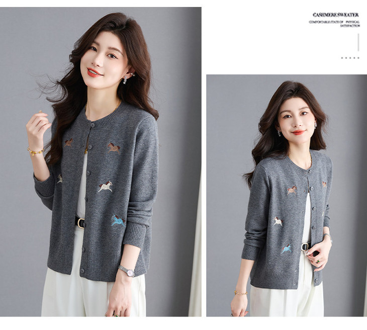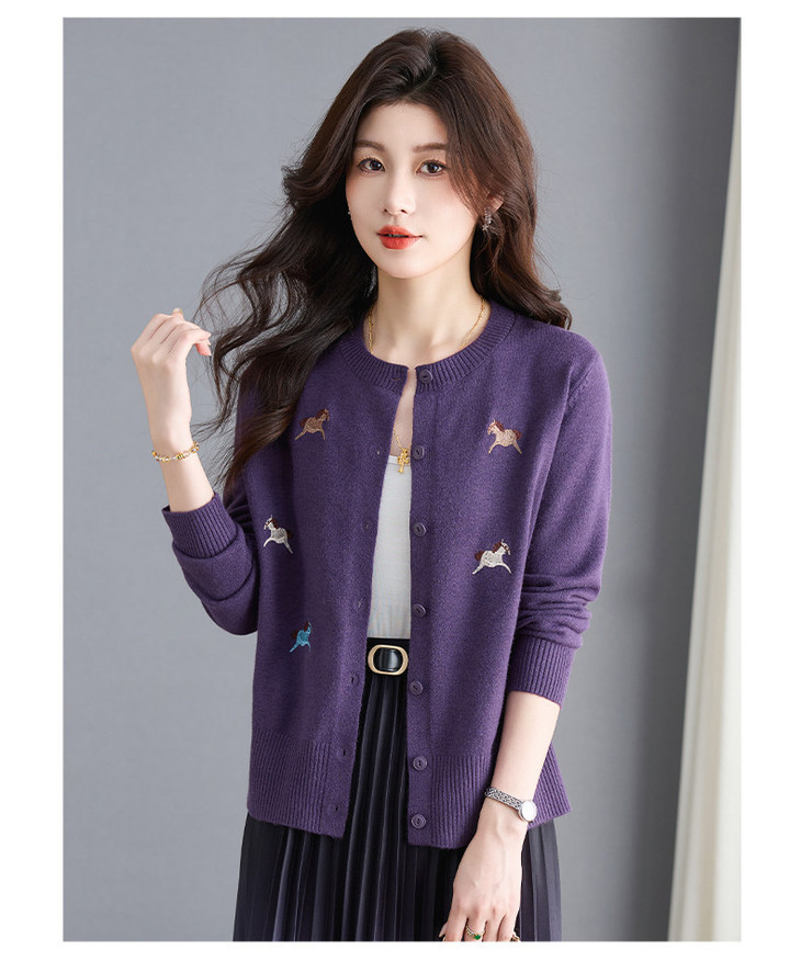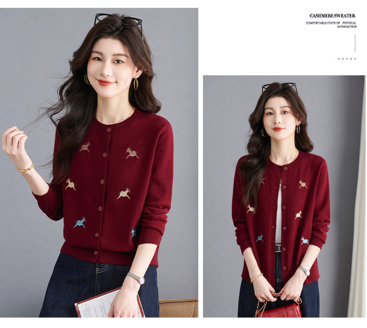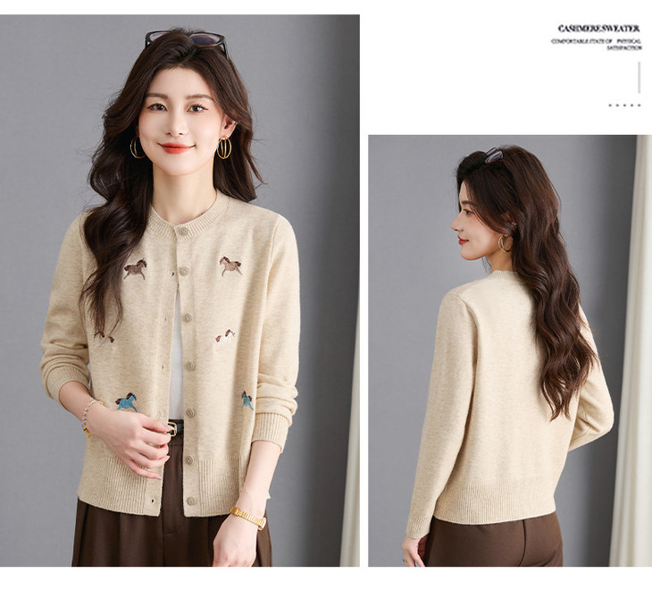 圆领刺绣针织开衫,纽扣毛衣外套修身显瘦上衣CC-103-C8125