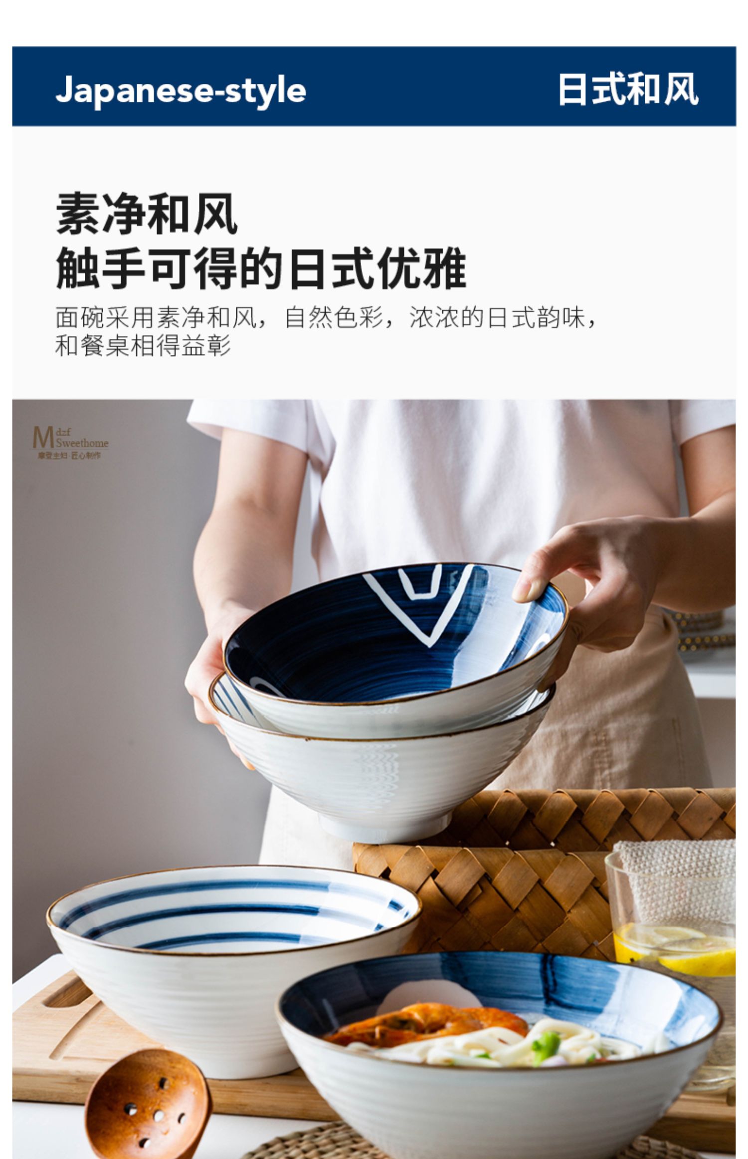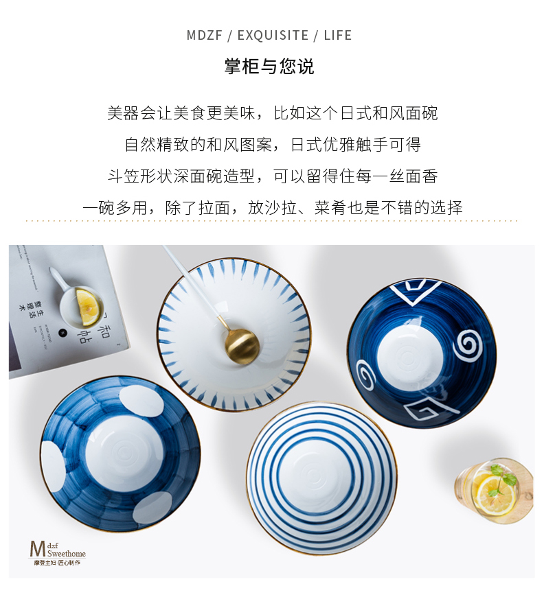 摩登主妇青瑶家用面碗汤碗大碗单个斗笠碗沙拉碗日式拉面碗泡面碗