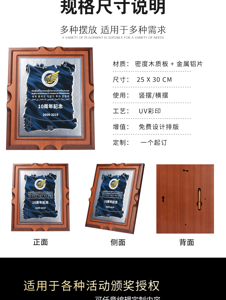 创意奖牌定制聘书高档实木证书木托牌匾高档木质纪念牌授权牌定做
