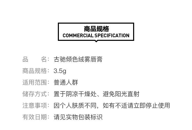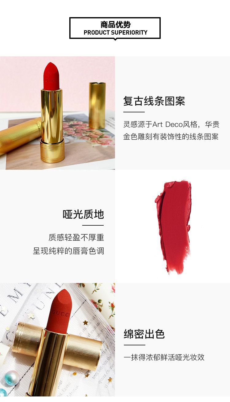 GUCCI 古驰金管哑光 倾色绒雾唇膏 口红3.5克