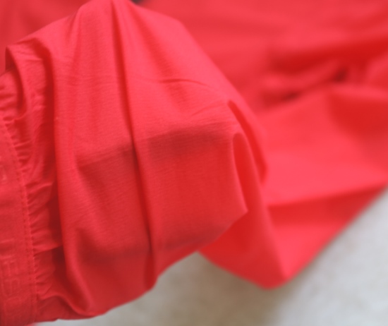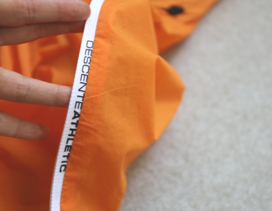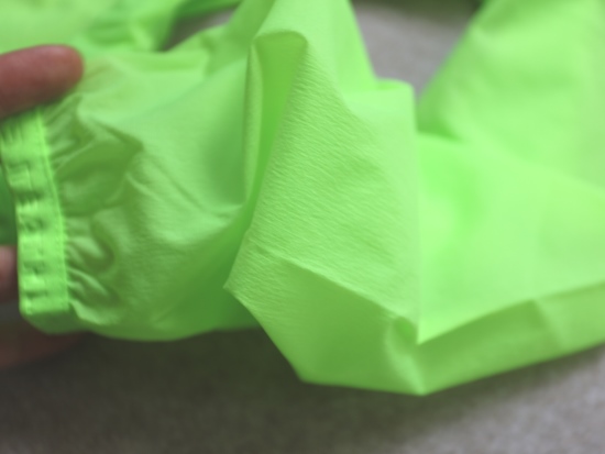 86%锦纶+14%氨纶 薄薄一件 很典型的梭织料 面料触感是微涩的