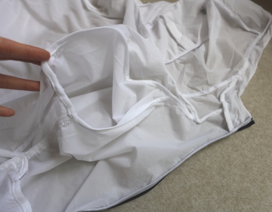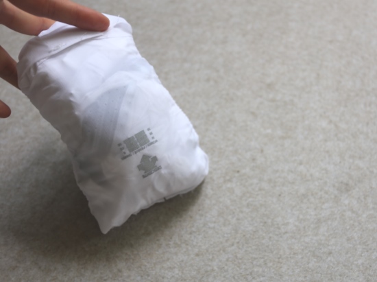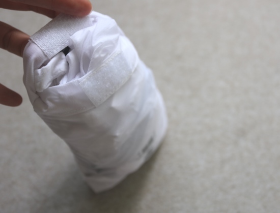 帽子里面 有个魔术贴粘扣 这是用来收纳衣服的 往里面塞就行 哈~