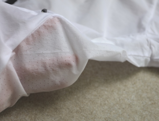 注意啊 整个后背都是小网眼的 虽然很防水 但雨天就不要穿了 哈~