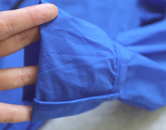 插肩 无肩线 腰间微收 袖口和底边后半圈 是小弹力边的
