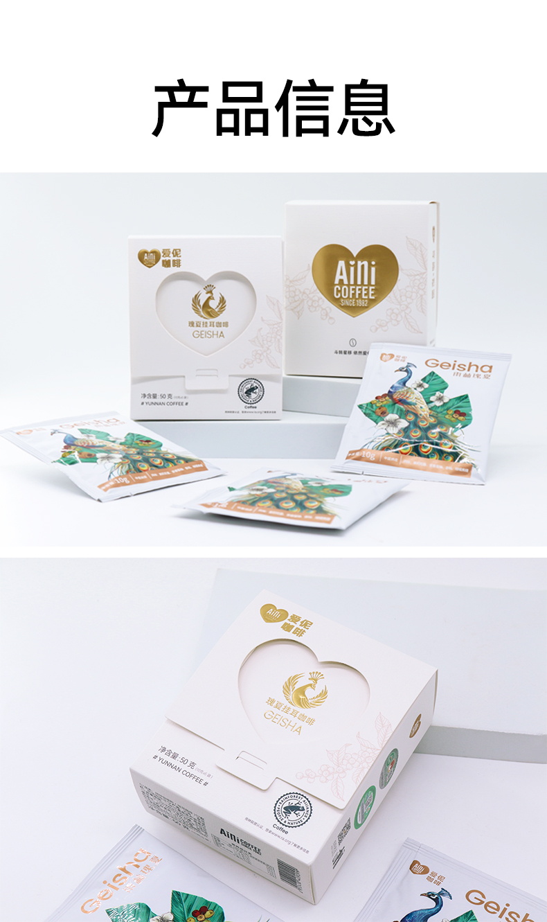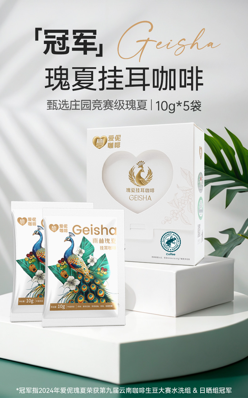 爱伲庄园 瑰夏挂耳 雨林联盟认证 有机精品挂耳咖啡10克*5袋/盒