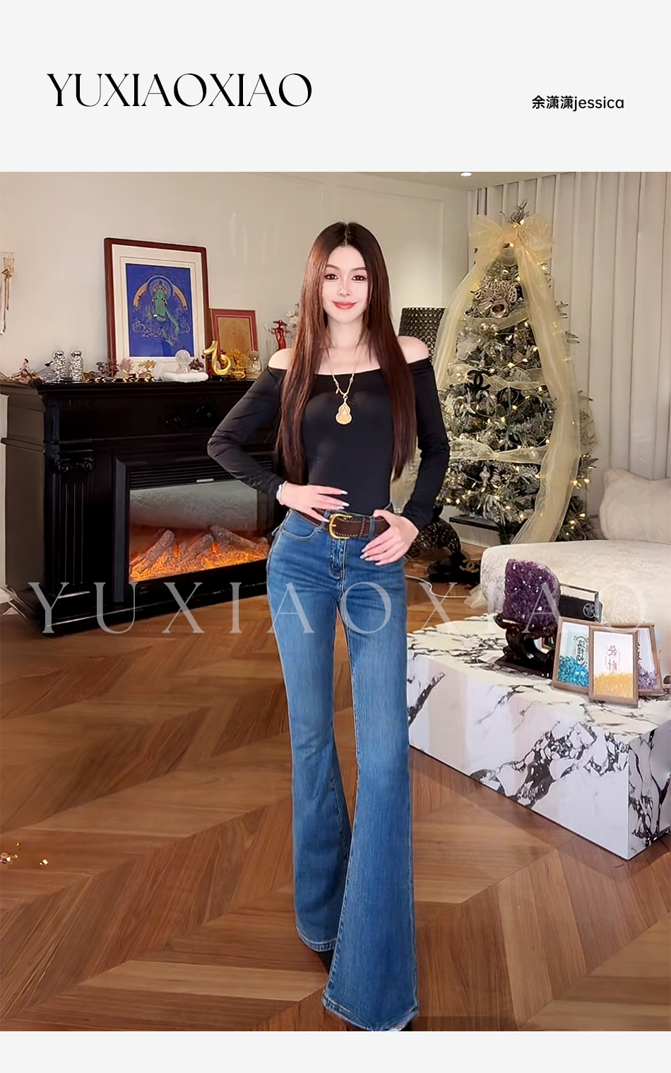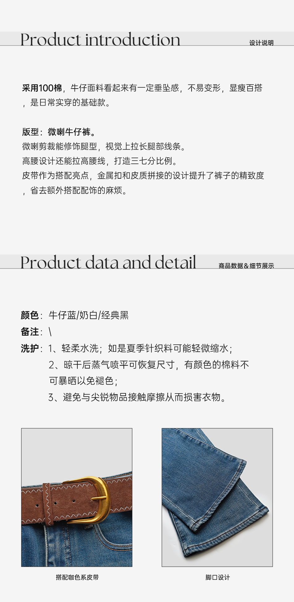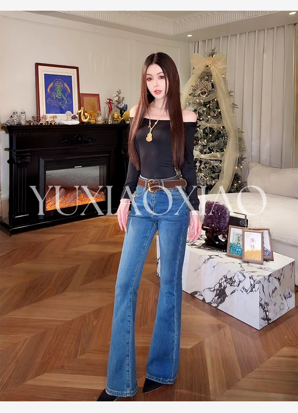 余潇潇【腔调腿精】100棉复古氛围感微喇牛仔裤配金属扣皮带