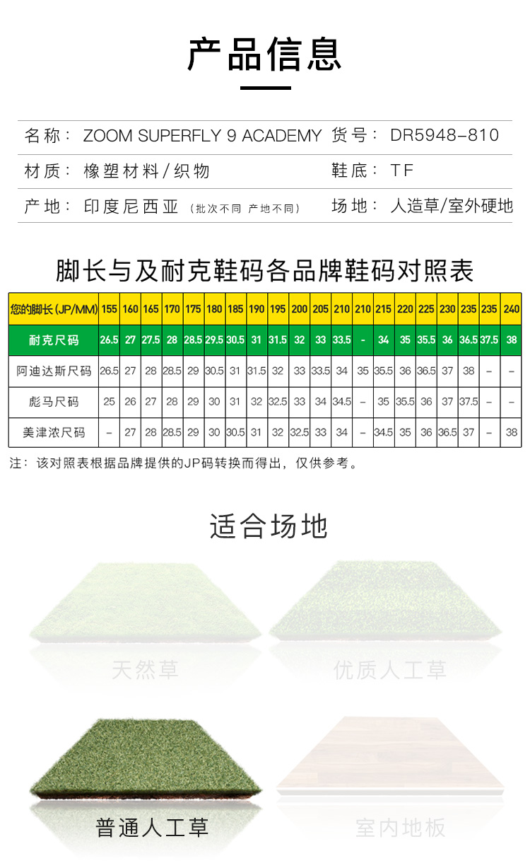 NIKE/耐克 ZOOM SUPERFLY 9 ACADEMY TF 刺客15 高帮中端TF足球鞋DR5948810