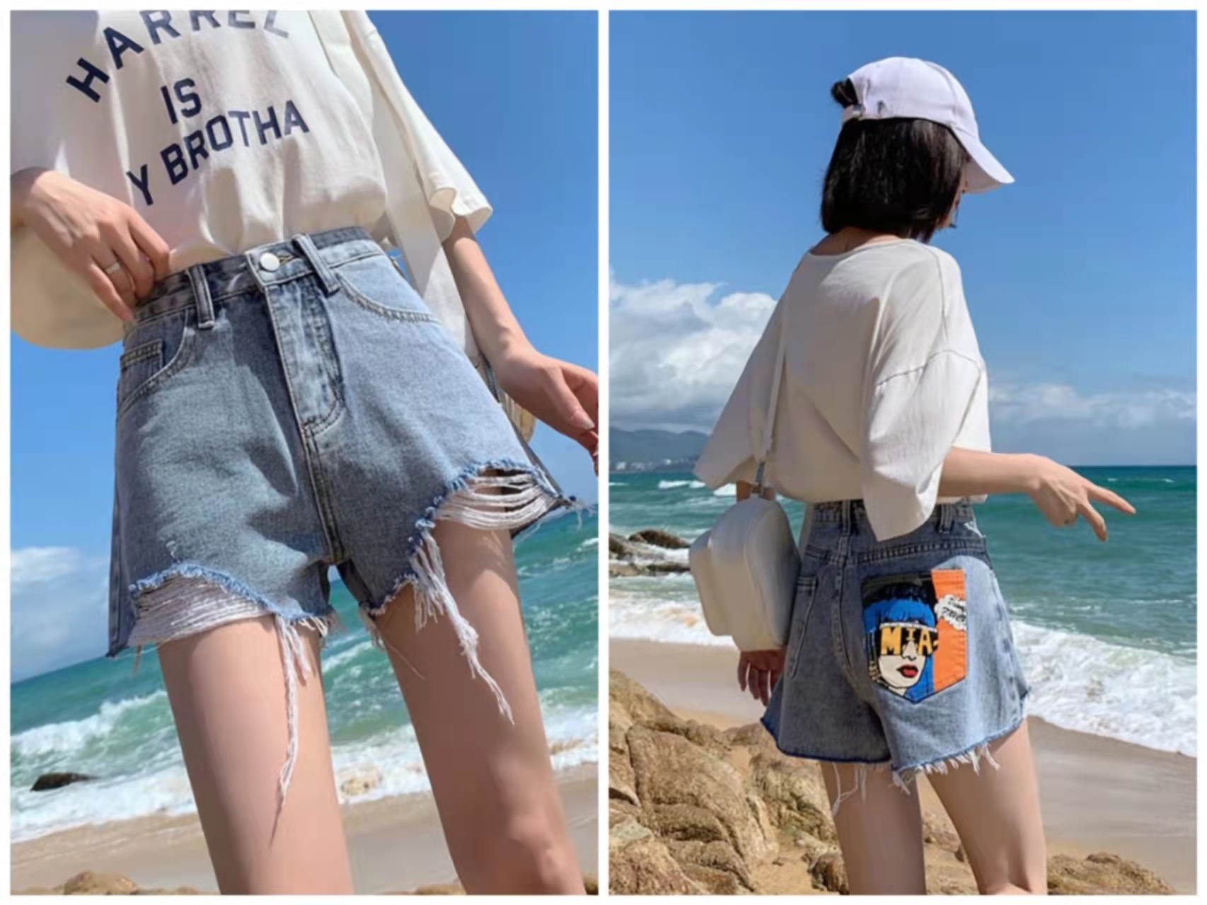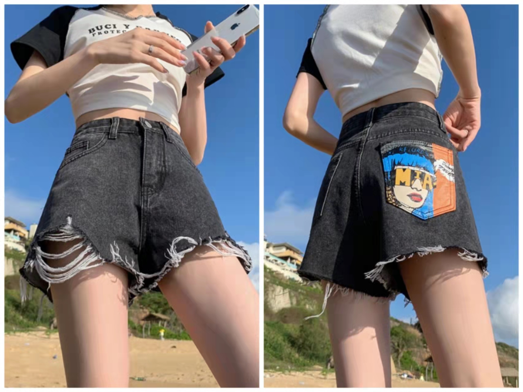 【HEY+JEANS】 2022夏季新款高腰显瘦牛仔裤 时尚热裤 牛仔裙