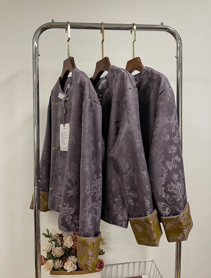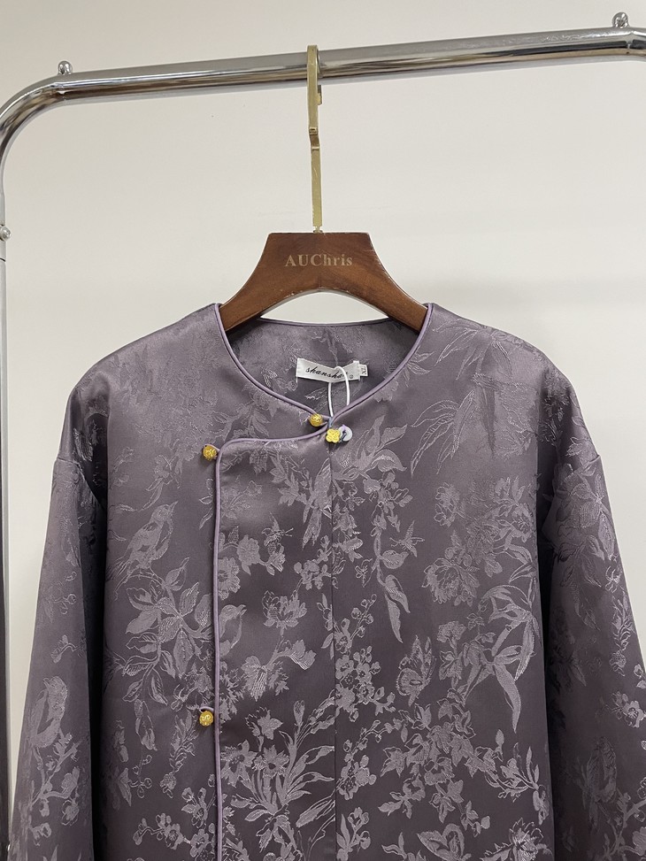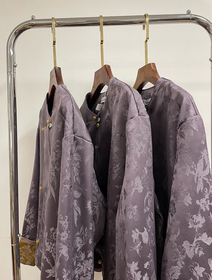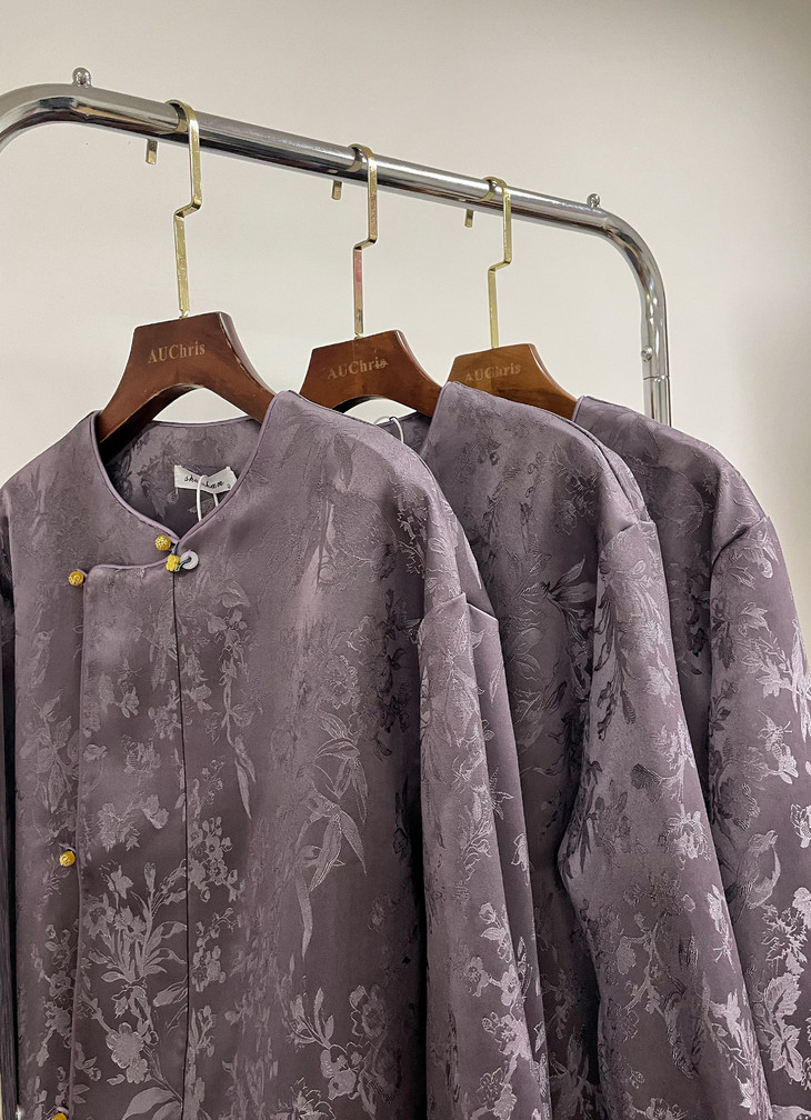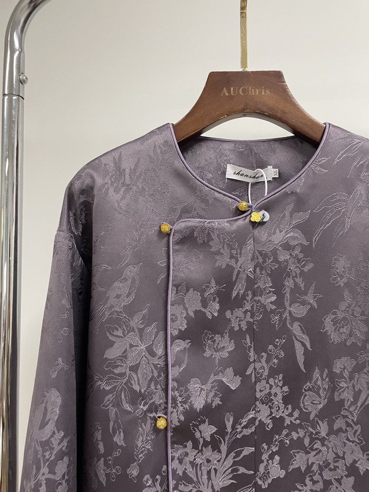 💥澳洲品牌直发【AUChris贵气老钱复古的新中式提花外套ACU081601】😍这个暮山紫长在心坎上!👏自留款,贼有分氛围感~❗️ 💰天猫价:588¥/件 💰团购价:209¥/件