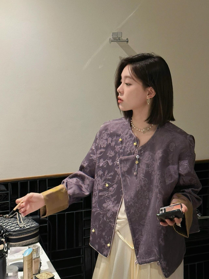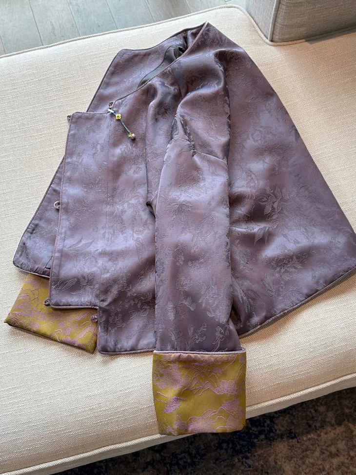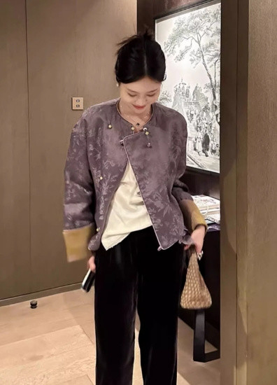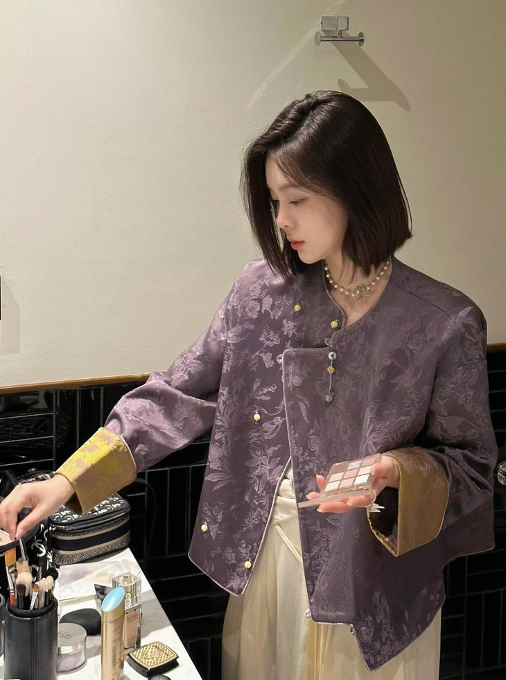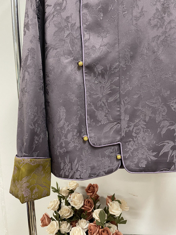 💥澳洲品牌直发【AUChris贵气老钱复古的新中式提花外套ACU081601】😍这个暮山紫长在心坎上!👏自留款,贼有分氛围感~❗️ 💰天猫价:588¥/件 💰团购价:209¥/件