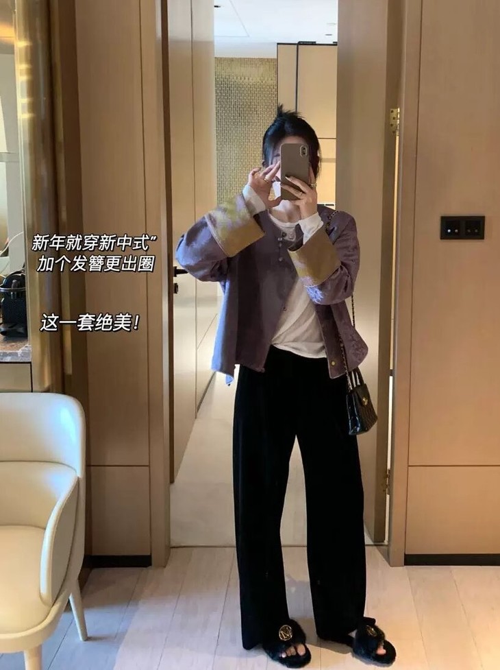 高级惬意~ 我觉得是一件可以搭配正常衣服都能穿的新中式 内里搭配白tee ➕白色褶皱裙 减龄仙女look 温婉动人 配个手表中和都很好看 贵妇风范~简简单单咖色系皮裤 内搭白色衬衫,也是非常百搭 简简单单配个西裤都很出圈的就是它啦