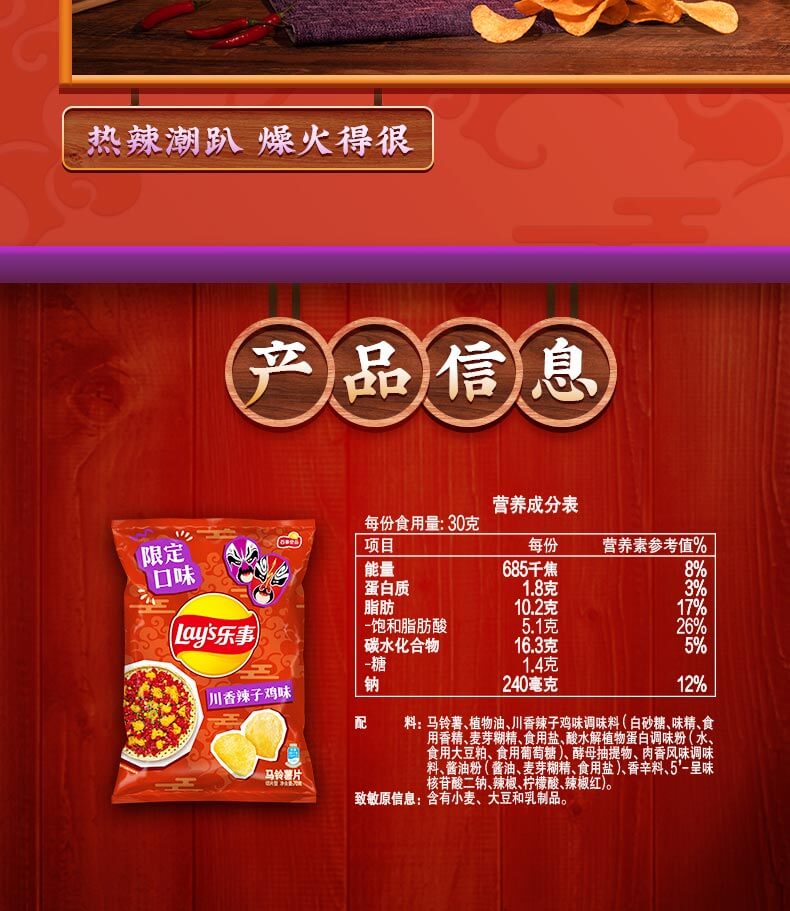 乐事薯片川香辣子鸡味70g/袋