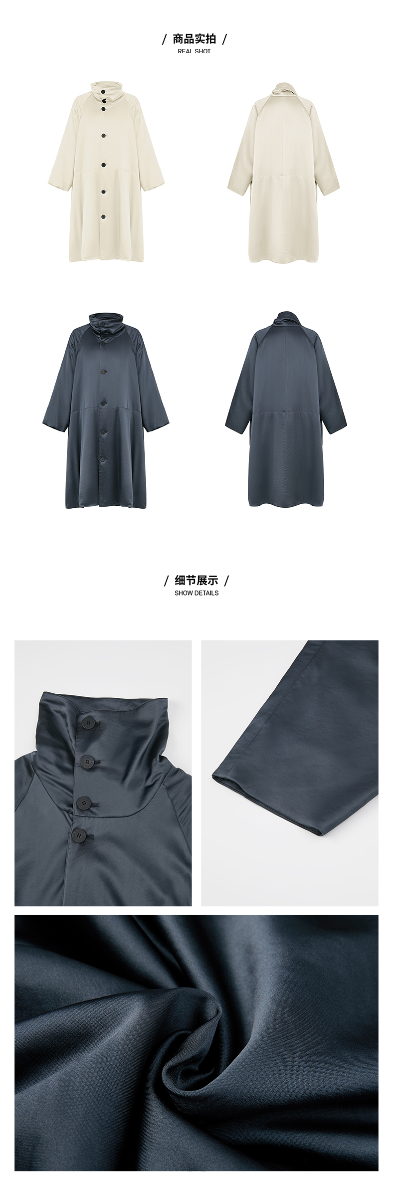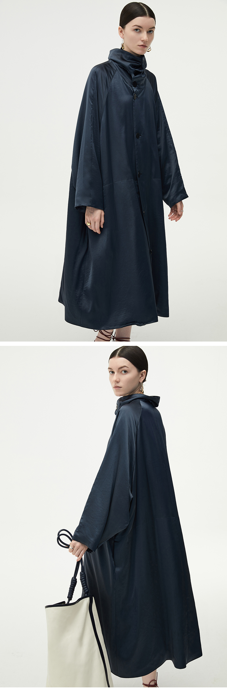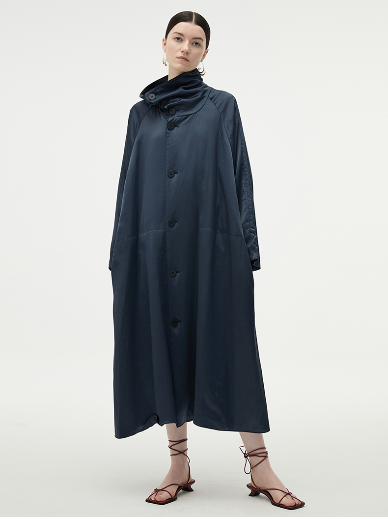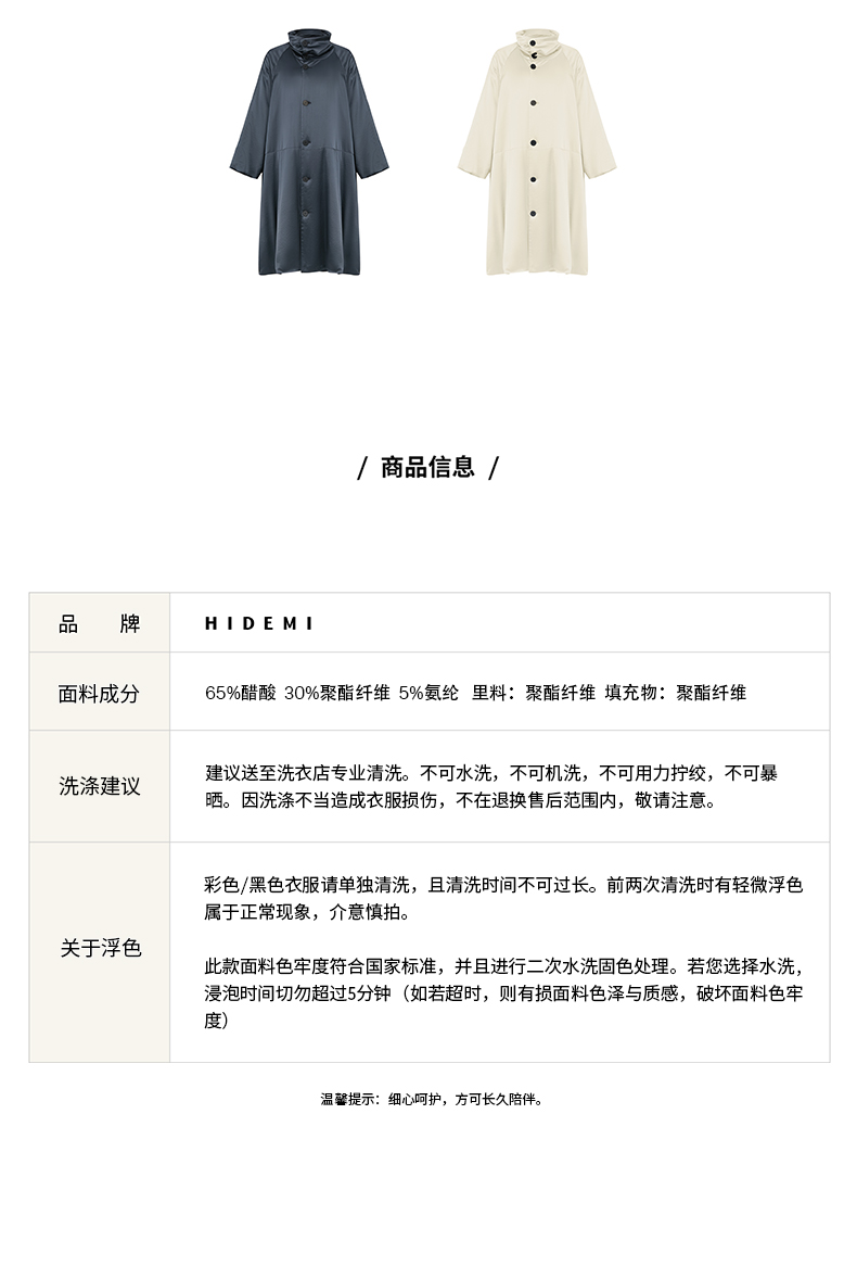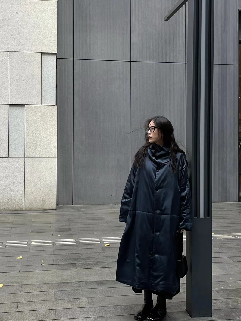 HIDEMI 行走的空气被 醋酸系列设计感长款棉服大衣 深海蓝/奶昔白