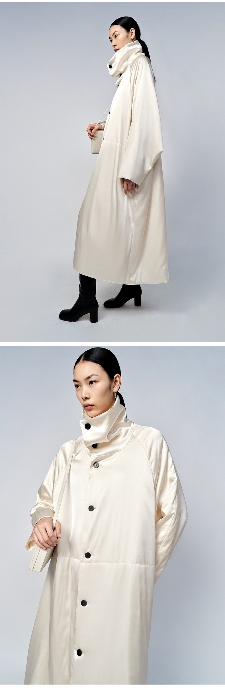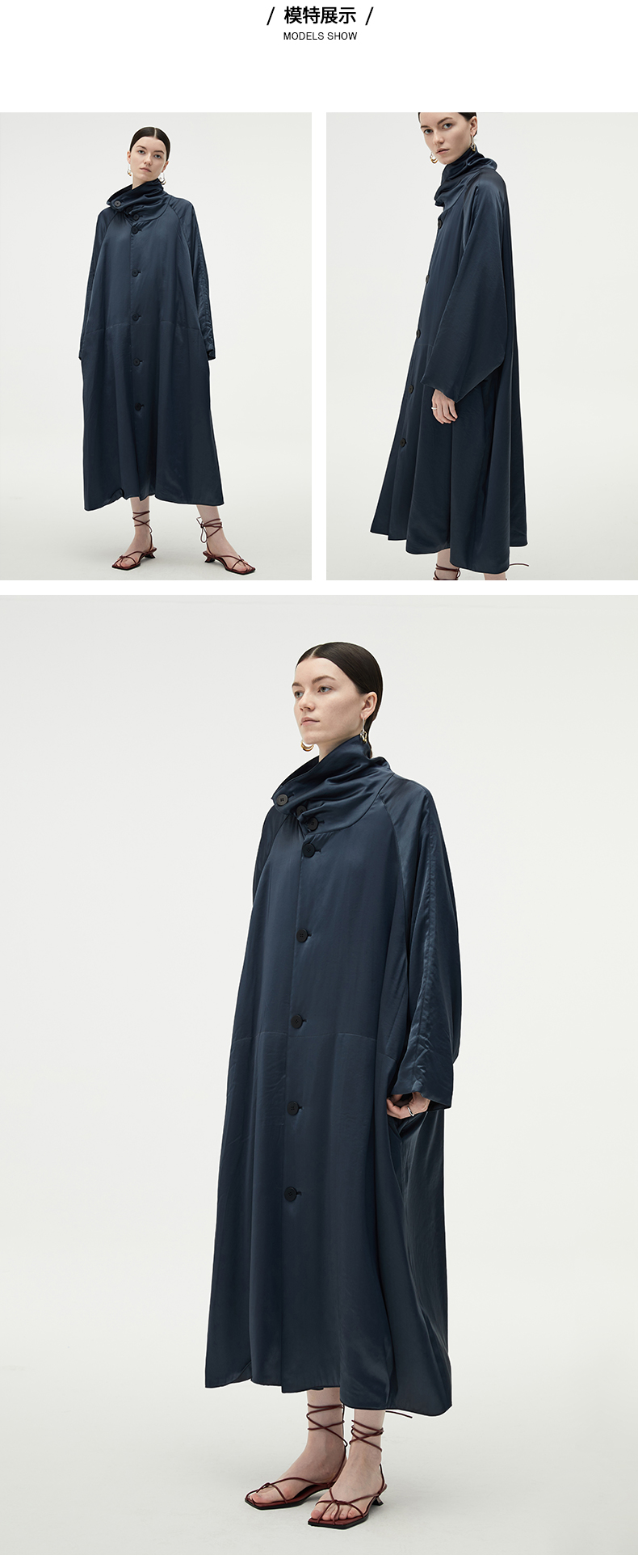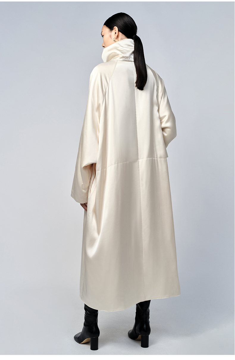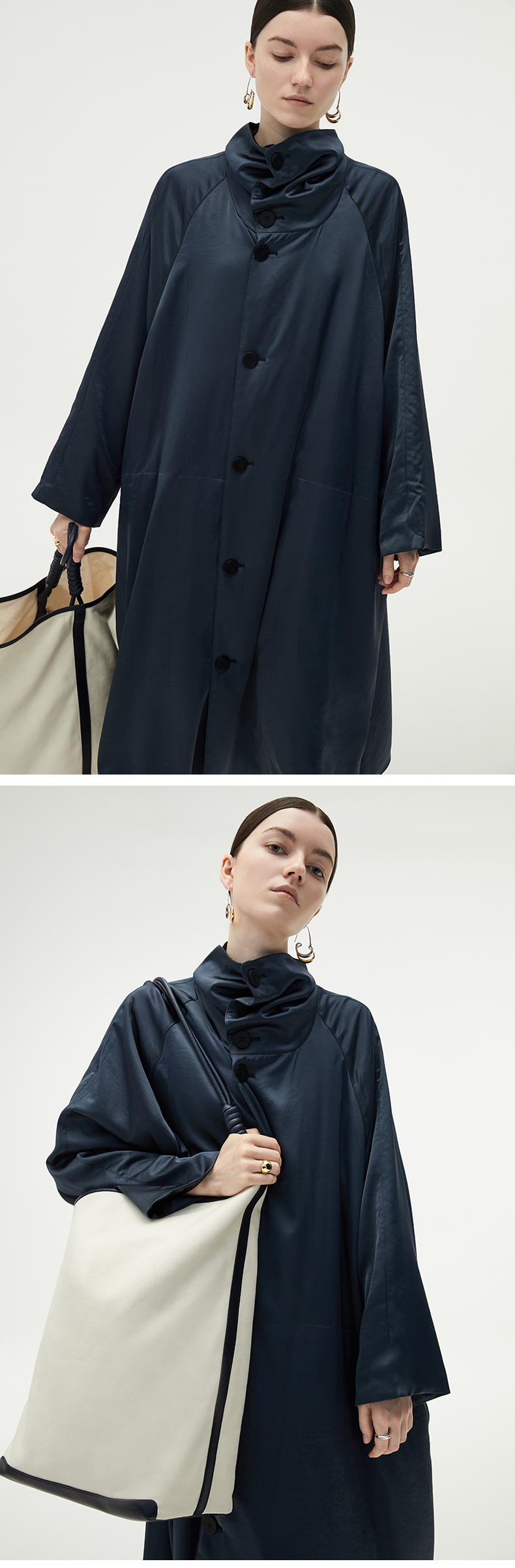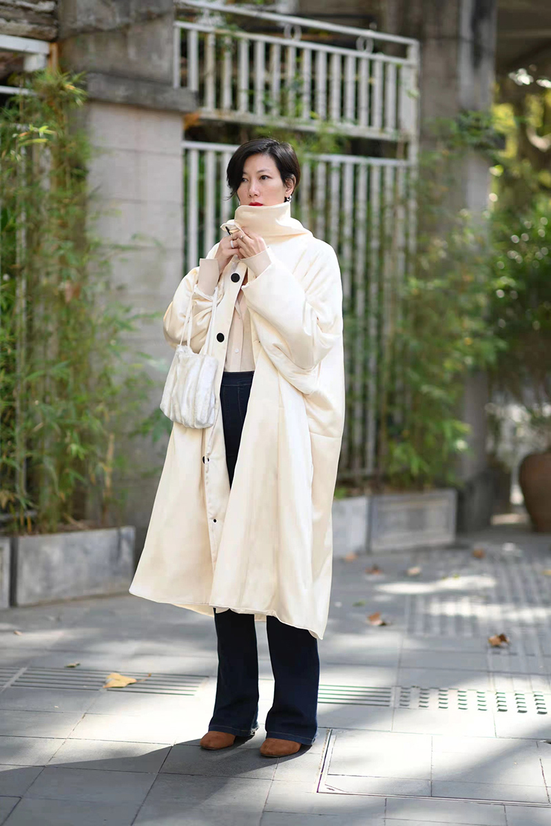 HIDEMI 行走的空气被 醋酸系列设计感长款棉服大衣 深海蓝/奶昔白